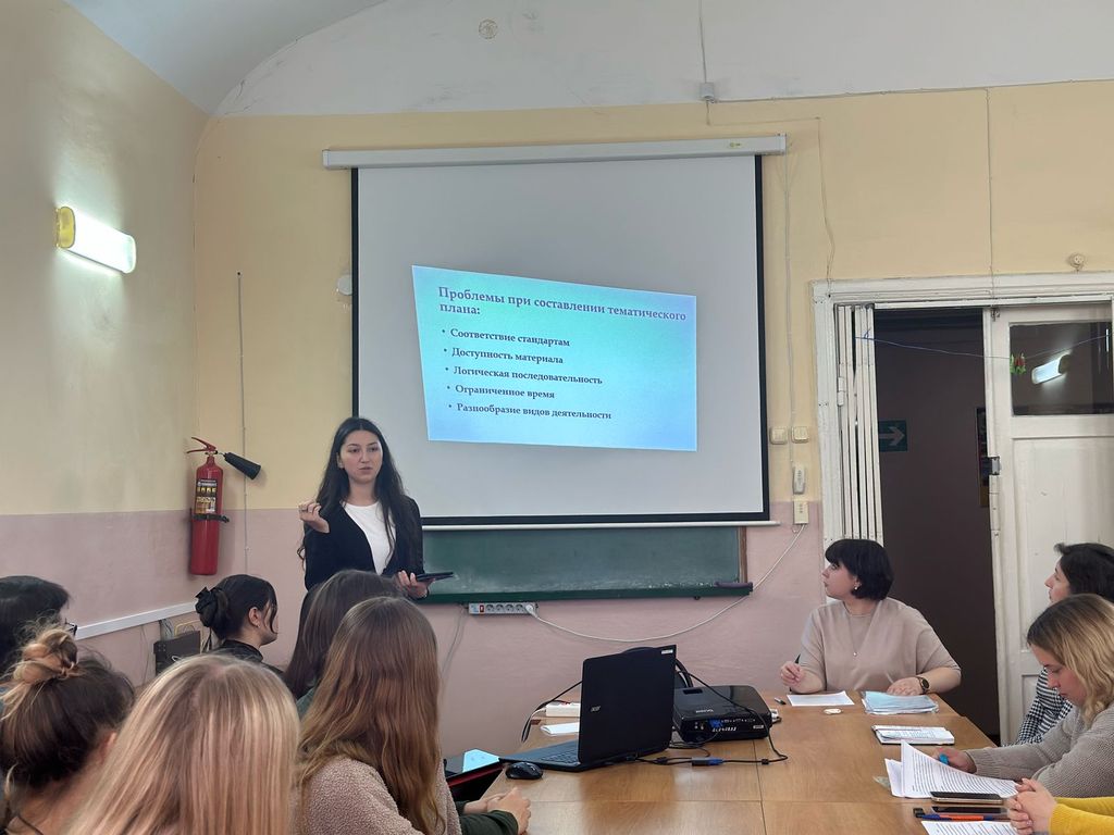 Методический семинар «Итоги педагогической практики»29 марта и 2 апреля 2025 года в рамках плана работы методического центра иноязычного образования (кафедра немецкого и французского языков) был проведен методически семинар по итогам педагогической практики. 29 марта студенты 4 курса группы ИЯ-342, проходившие практику в МАОУ СОШ № 10 под руководством опытного учителя-практика Г.А. Гнездиловой и заведующего кафедрой немецкого и французского языков О.В. Кравченко, отчитались об основных этапах работы, методических и психологических трудностях и причинах их возникновения, об удачах и моментах радости. На семинаре присутствовали студенты группы ИЯ-332, которые находятся в процессе подготовки к выходу на практику в школу. 2 апреля результаты практики студенты группы ИЯ-341 представили отчеты о прохождении педагогической практики в МАОУ «Гимназия имени А.П. Чехова» в форме электронных презентаций. В развернутой дискуссии c методистом, доцентом Е.А. Мурашовой студенты отметили ряд трудностей, связанных с адаптацией к школьному коллективу, необходимостью быстрого принятия решений и организацией индивидуального подхода к каждому ученику. Участники конференции пришли к выводу, что тщательная подготовка к занятиям и предварительное изучение особенностей каждого класса играет решающую роль в преодолении возможных трудностей. Одним из ярких моментов для каждого студента стало проведение внеклассных мероприятий, организованных с целью повышения мотивации учеников и создания дружественной атмосферы на занятиях. Студенты отметили, для успешного прохождения практики необходимо уделять больше внимания проработке индивидуальных образовательных траекторий учеников, изучению инновационных методик и углублению знаний в области современных педагогических технологий. В рамках профориентационной работы студенты организовали встречи с учащимися средних и старших классов, представив перспективы своей будущей профессии. Педагогическая практика стала важным этапом в подготовке будущих педагогов, позволив им приобрести ценный опыт и определить направления для дальнейшего совершенствования своих профессиональных навыков. |
