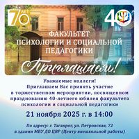 На факультете психологии и социальной педагогики Таганрогского института имени А.П. Чехова с 17 по 22 ноября состоялась традиционная Неделя психологии. Она приурочена ко Дню психолога, а также 70-летию ТИ имени А.П. Чехова и 40-летию факультета психологии и социальной педагогики и организована с целью распространения психологической науки и реализации профориентационных мероприятий. В этом году ее ключевой стала тема «Психологическое знание как ресурс».