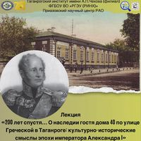 Приазовский научный центр РАО. «200 лет спустя...О наследии гостя дома 40 по улице Греческой в Таганроге: культурно-исторические смыслы эпохи императора Александра I»