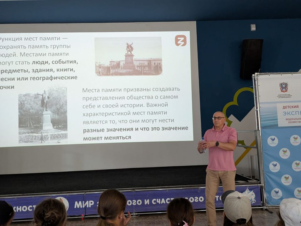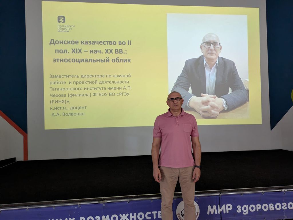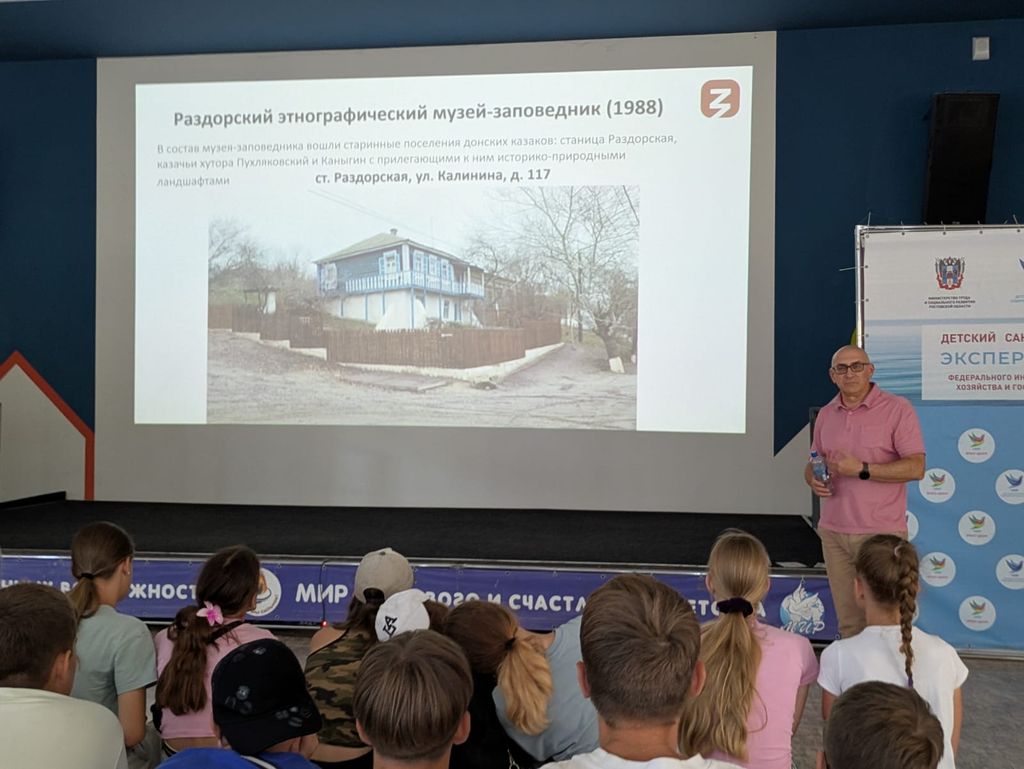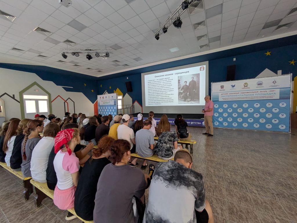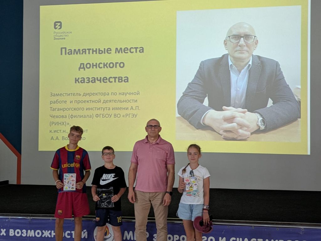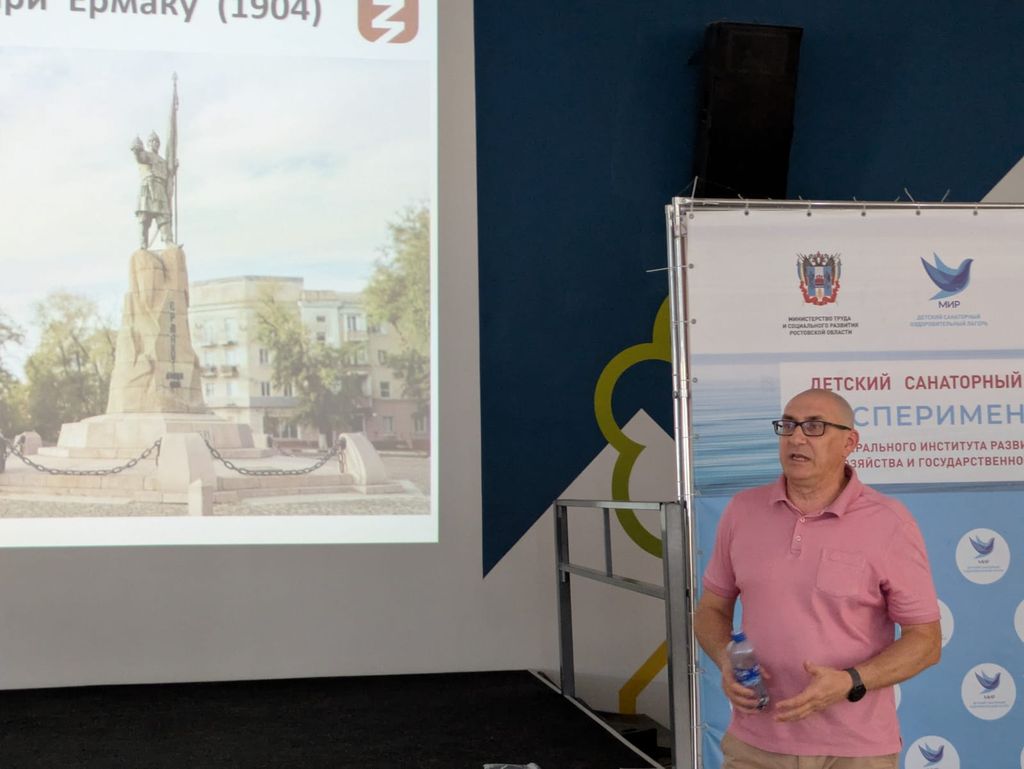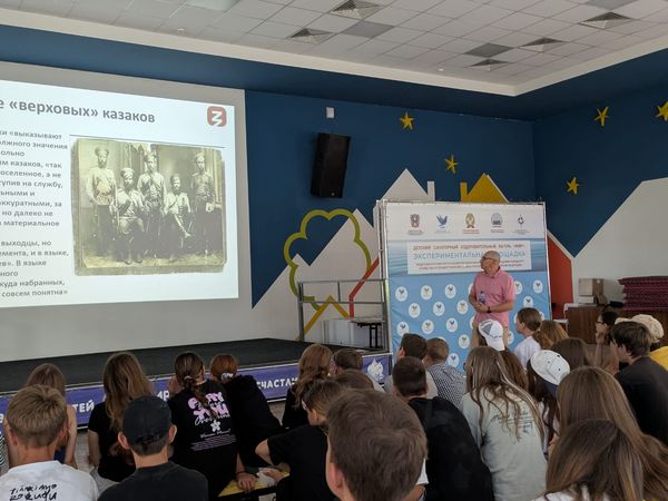 Новости все 01 августа, 2025 Сотрудничество научной лаборатории «Казачество в истории и памяти» факультета истории и филологии с Российским обществом «Знание»Филиал Российского общества «Знание» в Ростовской области (директор – канд. ист. наук Ж. С. Метелкина) уделяет большое внимание популяризации истории Донского казачества и развивает в этом направление взаимодействие с научной лабораторией «Казачество в истории и памяти» факультета истории и филологии. В рамках данного сотрудничества А. А. Волвенко – руководитель научной лаборатории, заместитель директора по научной работе и проектной деятельности Таганрогского института имени А.П. Чехова (филиала) РГЭУ (РИНХ), председатель общественного совета при Департаменте по делам казачества и кадетских учебных заведений РО, руководитель магистерской программы «Историческое образование в системе казачьих кадетских учебных заведений», кандидат исторических наук, доцент в качестве лектора Российского общества «Знание» представил серию лекций в детском санаторном оздоровительном лагере «Мир». В ходе лекций «Донское казачество во II половине XIX – начале XX веков: этносоциальный облик» и «Памятные места донского казачества» участники смены узнали много важных и познавательных фактов из истории казачества. Особое внимание во второй лекции Алексей Александрович уделил внимание памятникам, закреплявшим образ казака как защитника Отечества, увековечивающих память об атаманах (М. И. Платов, Я.П.Бакланова), и сохранению историко-культурного наследия донских казаков в музейных комплексах региона: Новочеркасский музей истории Донского казачества; Старочеркасский историко-архитектурный музей-заповедник; Раздорский этнографический музей-заповедник; Государственный музей-заповедник М. А. Шолохова; Культурно-выставочный центр «Донская казачья гвардия». |