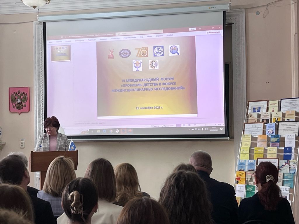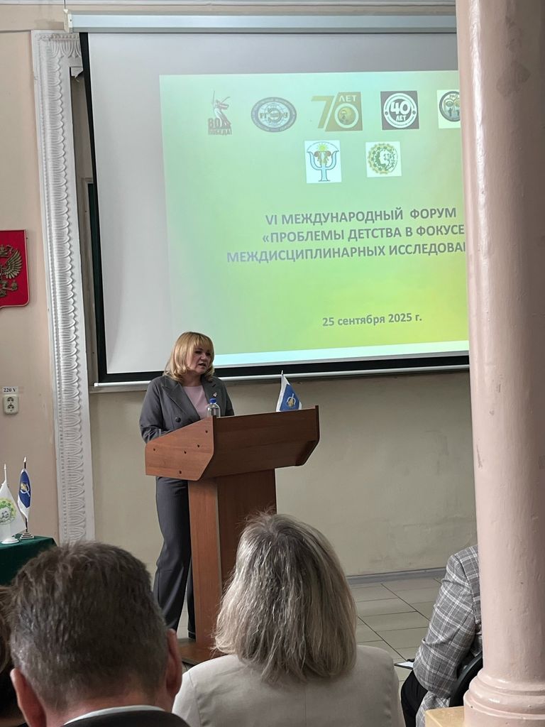 Новости все 01 октября, 2025 VI международный форум «Проблемы детства в фокусе междисциплинарных исследований»25 сентября 2025 г. на факультете психологии и социальной педагогики был проведен VI Международный Форум «Проблемы детства в фокусе междисциплинарных исследований», посвященный 80-летию Великой Победы, 70-летию Таганрогского института имени А.П. Чехова, 40-летию факультета психологии и социальной педагогики. В этом году подано более 300 заявок из России (Москва, Санкт-Петербург, Ростов-на-Дону, Таганрог, ДНР, ЛНР, Мурманск, Липецк, Краснодар и др.), а также из Белоруссии, Испании, Сербии, Нигерии. Тематика работы форума созвучна юбилейным датам и провозглашенному Году защитника Отечества, о чём свидетельствует тематика докладов и выступлений, объединенная общей проблемой духовно-нравственного развития и патриотического воспитания детей и молодёжи. На пленарном заседании прозвучали приветственные слова директора ТИ имени А.П. Чехова С.А. Петрушенко, заместителя генерального директора Российского общества «Знание», генерального директора образовательного Центра «Машук», канд. социол. наук А.В. Серикова, ректора Санкт-Петербургской академии постдипломного педагогического образования им. К.Д. Ушинского А.С. Богданцева, магистра психологии, психолога-логопеда Русской школы г. Барселона (Испания) М. Пашковой, директора Центра развития карьеры Московского экономического института, И.Н. Самойлова, профессора факультета менеджмента, Сремски Карловца, Университетский союз Николы Теслы, Президента Ассоциации развития науки, техники и образования, г. Белград (Сербия) Лазаря Стошича. С докладами «Патриотическое воспитание в Неклиновском районе» и «К проблеме культурного контекста травмобезопасного исторического просвещения», «Приемы создания графических материалов и видеоконтента для реализации STEAM- образования» выступили начальник Управления образования Администрации Неклиновского района РО, канд. пед. наук. В.М. Пегушин, д-р пед. наук, профессор АПП ЮФУ А.Г. Бермус, заместитель декана Белорусского государственного педагогического университета имени Максима Танка г. Минск (Белоруссия) Н.С. Сологуб. Программу пленарного заседания завершило выступление с докладом «Феномен детства в антропологической оптике» проф. кафедры психологии ТИ имени А.П. Чехова (филиала) РГЭУ (РИНХ), д-ра филос. наук, научного руководитель Центра «Антропология Детства»» Т.Д. Скудновой. Работа международного форума была продолжена в рамках 4 секционных заседаний: 1). Теоретические и практические аспекты междисциплинарных исследований проблем детей и молодежи (модераторы – проф. Т.Д. Скуднова, доц. Ю.К. Дуганова); 2). Теоретические и прикладные исследования психологии духовно-нравственного развития личности в воспитательно-образовательном процессе (модераторы – доц. В.И. Мищенко, доц. Е.В, Казанцева); 3). Патриотическое воспитание подрастающего поколения в непрерывном образовании (модераторы – доц. Л.Я. Жилина, ст. преп. К.В. Гуменюк); 4). Наставничество как феномен духовной навигации в педагогическом образовании: современные технологии и эффективные практики (модераторы – доц. Т.И. Меньшикова, ст. преп. С.Э. Бартенева). Мастер-классы были организованы на 5 тематических площадках: 1). Центр «Антропология детства» – мастер- класс «Брошь-цветок», мастер-класс «Русск
