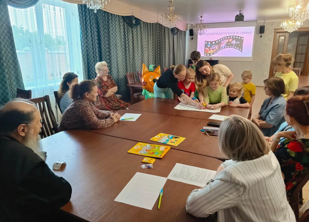 Новости все 03 июня, 2025 «Медиапедагогика в семье»: очередная встреча семейного клуба «Благовест»Проект «Семейный клуб "Благовест"» реализуется в рамках трёхстороннего соглашения между Таганрогским центром помощи детям № 5, РГЭУ (РИНХ) и Никольским храмом г. Таганрога по оказанию социальной и психолого-педагогической помощи семьям с детьми, оказавшимся в трудной жизненной ситуации. 29 мая 2025 года в семейном клубе "Благовест" прошла интересная и познавательная встреча, посвященная актуальной теме – медиапедагогике в семье. В организации и проведении встречи приняла активное участие кафедра психолого-педагогического образования и медиакоммуникации: зав. кафедрой И.В. Челышева, канд. пед. наук, доцент Л.И. Кобышева, студенты-волонтеры, обучающиеся по профилю «Психология и социальная педагогика», магистранты программы «Педагогика и психология воспитания». В ходе встречи родители погружались в мир новых знаний, разбираясь в терминах и методах медиапедагогики, учились анализировать медиатексты и знакомились с воспитательным, развивающим и образовательным потенциалом медиа. Они смогли познакомиться с играми по мотивам анимационных фильмов, вместе увлечённо создавали сюжеты для мультфильмов, обсуждали возможности организации игровой деятельности на материале медиа в семейном воспитании. Юные участники клуба с большим интересом занялись медиатворчеством, смогли проявить свою фантазию и выдумку. Они создавали пластилиновую анимацию по мотивам всеми любимого мультфильма "Три кота". Маленькие мультипликаторы старательно лепили фигурки, придумывали новые истории героев, терпеливо выстраивали кадры будущего мультфильма. Кульминацией встречи стало объединение детей и родителей. Ребята с гордостью представили свои пластилиновые шедевры, демонстрируя родителям увлекательный сюжет, созданный своими руками. Родители были приятно удивлены креативностью и мастерством своих детей, а совместный просмотр созданной ребятами анимации стал прекрасным завершением дня, наполненного новыми знаниями и положительными эмоциями. Благодарим Таганрогский центр помощи детям № 5, Никольский храм г. Таганрога за активное взаимодействие по реализации проекта!