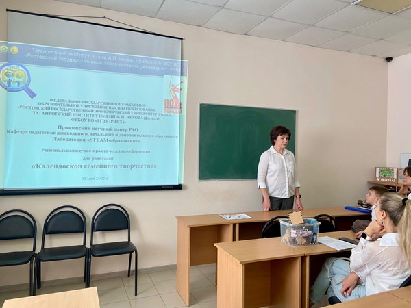 Новости все 03 июня, 2025 Региональная научно-практическая конференция для родителей дошкольников и обучающихся начальной школы «Калейдоскоп семейного творчества», посвященная Году защитника Отечества и 80-летию Победы в Великой Отечественной войне 1941–1945 годов31 мая в канун Дня защиты детей состоялась Региональная научно-практическая конференция для родителей дошкольников и обучающихся начальной школы «Калейдоскоп семейного творчества», организованная Приазовским научным центром РАО, кафедрой педагогики дошкольного, начального и дополнительного образования, лабораторией «STEAM-образование». Цель конференции – согласование и объединение усилий образовательной организации и семьи в создании условий для гармоничного, всестороннего развития личности ребенка, повышение педагогической и психологической грамотности родителей в воспитании и развитии детей; укрепление связи между семьей и образовательной организацией, поиск совместных решений в преодолении возможных трудностей; создание ситуации успешности для ребенка в школе и детском саду при непосредственном внимании родителя; формирование мировоззрения детей, ориентированного на освоение наук и практическое применение знаний, вовлечение семьи в совместное творчество, напоминание о важности исторической памяти и о непреходящей ценности мира, который защищают наши защитники Отечества своей мужественностью и самоотверженностью. В конференции приняли участие родители дошкольников и обучающихся начальной школы города Таганрога и Ростовской области, многие из которых не первый раз становятся участниками мероприятий, организованных Таганрогским институтом имени А.П. Чехова (филиалом) РГЭУ (РИНХ). Тематические направления конференции. – Храним память о защитниках Отечества. – Научные достижения нашей семьи. – Педагогические находки. Обмен опытом. – Создаём красоту своими руками (поделки, вышивки и т.д.). – Техническое творчество. – Литературное творчество. Доклады, представленные на конференции, освещали широкий диапазон проблем: организация взаимодействия с детьми в семье; творчество детей и многие другие. Нужно отметить, что подавляющее большинство выступлений были посвящены вопросам, связанным с патриотическим воспитанием (сохранение памяти о героях Великой Отечественной войны). Все представленные доклады не оставили равнодушными слушателей. Каждое выступление сопровождалось дискуссией. Родители благодарили организаторов встречи за возможность участия в таком мероприятии, поскольку испытывают дефицит знаний и опыта в вопросах организации воспитания детей в семье. Преподаватели кафедры педагогики дошкольного, начального и дополнительного образования – Марина Алексеевна Пуйлова, канд. пед. наук, профессор; Ирина Александровна Терских, канд. пед. наук, доцент; Сусанна Лауриевна Налесная, канд. пед. наук, доцент и Василиса Алексеевна Буданова, старший преподаватель, – смогли создать обстановку доверительного общения и плодотворного взаимодействия. Марина Алексеевна рассказала участникам конференции о профилях подготовки и магистерских программах, которые реализуются в Таганрогском институте имени А.П. Чехова (филиале) РГЭУ (РИНХ), в частности, на факультете педагогики и методики дошкольного, начального и дополнительного образования, а также 