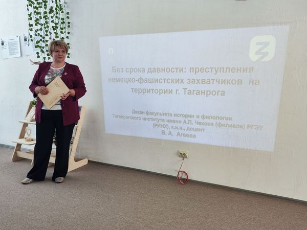 Новости все 04 сентября, 2025 Сохранение исторической памяти30 августа, в День освобождения г. Таганрога и Ростовской области от немецко-фашистских захватчиков, декан факультета истории и филологии, кандидат исторических наук, доцент, лектор Российского общества «Знание» В. А. Агеева прочитала для жителей города публичную лекцию «Без срока давности – преступления немецко‑фашистских захватчиков на территории г. Таганрога». В рамках лекции Валентина Анатольевна уделила внимание цифровому мемориалу, посвященному памяти о мирных жителях Ростовской области, оказавшихся на нацистской каторге в 1942-1945 годах, о тех, кто погиб от принудительного труда, одному из главных преступлений нацистов против человечности – базе данных и интерактивной карте, содержащих статистические и пофамильные сведения об угнанных на принудительные работы в Третий рейх жителей Дона, размещенных в открытом доступе на специально созданной на факультете истории и филологии Таганрогского института имени А. П. Чехова платформе: ostarbaiters.ru |