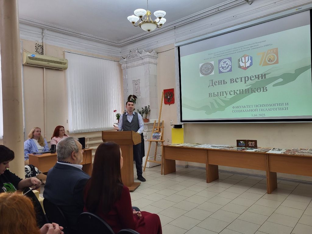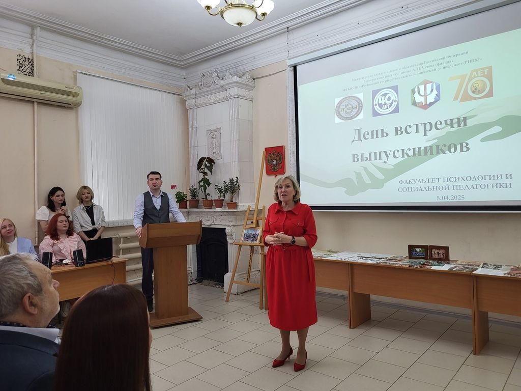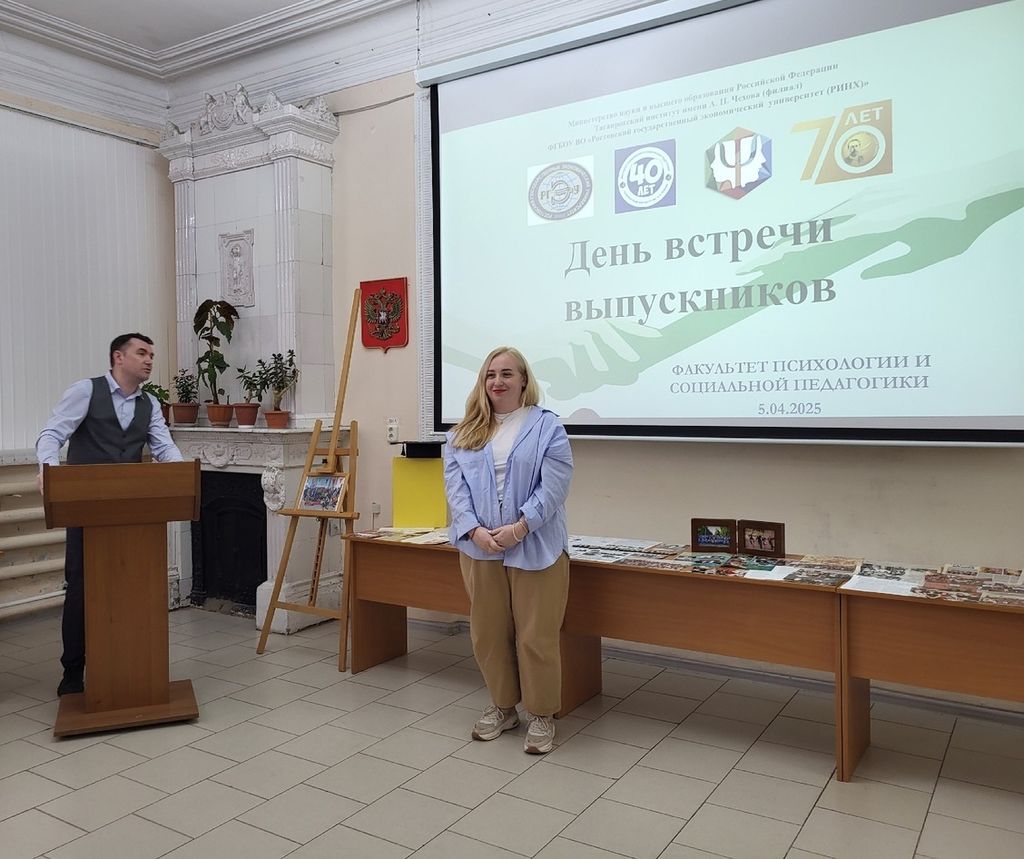 Новости все 07 апреля, 2025 День встречи выпускников факультета психологии и социальной педагогики5 апреля 2025 г. в рамках мероприятий, приуроченных к празднованию 40-летнего юбилея факультета психологии и социальной педагогики и 70-летнего юбилея ТИ имени А.П. Чехова, в актовом зале ФПиСП состоялся День встречи выпускников. В качестве ведущего мероприятия выступил зам. декана по ВР А.В. Макаров, подготовивший мини-выставку фотографий, архивных документов и газет, иллюстрирующих основные этапы развития факультета. Мероприятие является традиционным и любимым для всех, кто имеет отношение к данному структурному подразделению института. Об этом в приветственном слове рассказала декан ФПиСП О.А. Музыка, познакомившая выпускников ФПиСП с последними достижениями и поздравившая с очередным крупным юбилеем факультета. Приятным сюрпризом стало обращение к гостям почётного декана ФПиСП В.В. Гуры. Выпускников разных лет поприветствовали преподаватели: зам. декана по УР Л.И. Кобышева, зав. кафедрой И.В. Челышева, доц. О.И. Ефремова, доц. В.С. Шаповалова, доц. Т.И. Меньшикова, доц. В.И. Мищенко, асс. К.В. Гуменюк. Эмоциональным по своему содержанию стало выступление выпускников 2010 и 2015 гг., которые отмечают в этом году очередной юбилей с момента окончания вуза. Представители студенческого актива подготовили несколько творческих номеров для всех участников встречи: авторское стихотворение «Крайности», блок «Где логика» (С. Агенкова и И. Горбанёв) и музыкальный подарок (В. Талалай и Д. Марунченко). Время встречи пролетело незаметно. После совместного фото на память преподаватели и выпускники были приглашены на чаепитие, где общение продолжилось в свободном формате. |