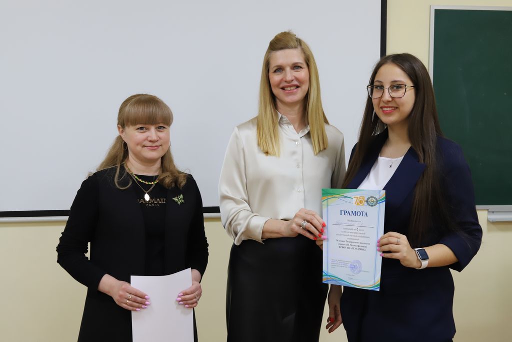 Новости все 11 апреля, 2025 О секционных заседаниях 68-й студенческой научно-практической конференции кафедры русского языка, культуры и коррекции речи10 апреля 2025 года на факультете ПиМДНиДО прошли секционные заседания 68-й студенческой научно-практической конференции кафедры русского языка, культуры и коррекции речи. 40 студенческих докладов было заслушано на секциях 1 «Актуальные вопросы лингвистики и методические аспекты преподавания русского языка в вузе и в школе» (председатель жюри – декан факультета С.В. Гармаш), 2 «Актуальные вопросы логопедии» (председатель жюри – доцент Н.В. Макарова) и 3 «Методические аспекты логопедической работы» (председатель жюри – доцент Г.Н. Кобякова). Свои научные исследования представили студенты, обучающиеся по профилям «Логопедия» и «Начальное образование» и «Дошкольное образование», тематика работ которых была очень разнообразной. По результатам проведения конференции призовые места были определены следующим образом: Секция № 1 1-е место – Семенцова У.И за доклад на тему «Как называют учителя?» (научный руководитель – докт. филол. наук, профессор И.В. Голубева); 2-е место – Королюк К.В. за доклад на тему «Возможности применения иллюстративного материала на уроках литературного чтения в начальной школе» (научный руководитель – докт. филос. наук, профессор В.Г. Семенова); 3-е место – Зубцова Д.И. за доклад на тему «Концепт «победа» в языке и в речевой картине мира детей и взрослых» (научный руководитель – докт. филол. наук, профессор И.В. Голубева). Секция № 2 1-е место – Денисова Ю.С. за доклад на тему «Характеристика сенсорной сферы детей с речевыми расстройствами» (научный руководитель – канд. пед. наук, доцент Н.В. Макарова); 2-е место – Бережная С.А. за доклад на тему «Особенности фонематических представлений у детей с речевыми расстройствами» (научный руководитель – канд. пед. наук, доцент Н.В. Макарова); 3-е место – Галицкая Е.А. за доклад на тему «Особенности логопедической работы по коррекции оптической дисграфии у младших школьников» (научный руководитель – канд. филол. наук, доцент О.Н. Филиппова) и Лобачева В.Ю. за доклад на тему «Уровень развития адъективного словаря у дошкольников с тяжёлыми нарушениями речи» (научный руководитель – канд. филол. наук, доцент Н.А. Гурдаева). Секция № 3 1-е место – Стерлядникова А.С. за доклад на тему «Особенности словаря прилагательных у детей с ОНР» (научный руководитель – канд. филол. наук, доцент Н.А. Минаева); 2-е место – Чернова А.А. за доклад на тему «Особенности ошибок при оптической дисграфии у учащихся 3-х классов» (научный руководитель – канд. филол. наук, доцент Г.Н. Кобякова); 3-е место – Чугунова В.В. за доклад на тему «Особенности словаря признаков у детей с общим недоразвитием речи III уровня речевого развития» (научный руководитель – канд. филол. наук, доцент О.Н. Филиппова). Благодарим победителей и всех докладчиков за активное участие и желаем дальнейших научных достижений! |