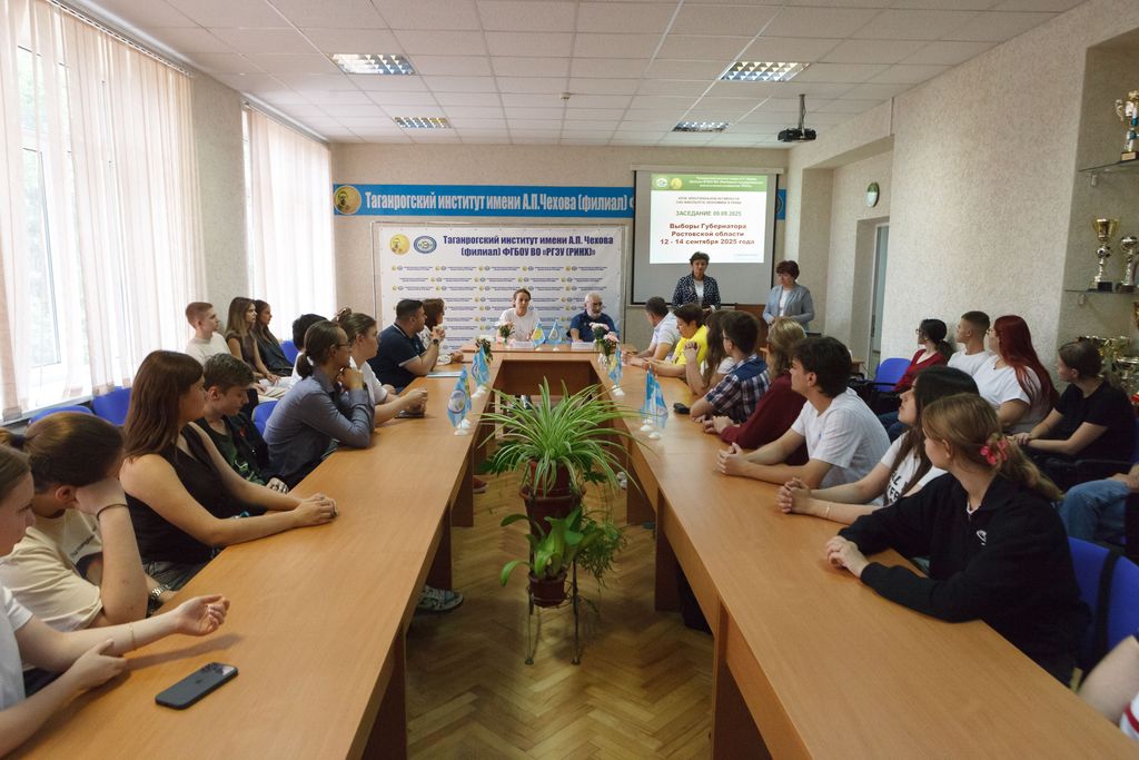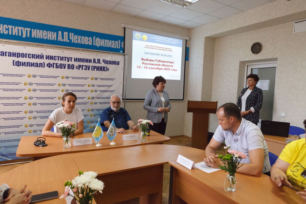 Новости все 11 сентября, 2025 Заседание Клуба электоральной активности на факультете экономики и права09 сентября 2025 г. на факультете экономики и права состоялось традиционное заседание Клуба электоральной активности, которое было посвящено выборам Губернатора Ростовской области. Участниками мероприятия стали директор Таганрогского института имени А.П. Чехова (филиал) РГЭУ (РИНХ), канд. филос. наук, доцент С.А. Петрушенко, председатель Территориальной избирательной комиссии города Таганрога (западная) Альбина Михайловна Ищенко, декан факультета экономики и права д-р пед. наук И.А. Стеценко, заведующий кафедрой отраслевых юридических дисциплин, канд. юрид. наук, доцент О.А. Курилкина, преподаватели и студенты факультетов экономики и права, истории и филологии, педагогики и методики дошкольного, начального и дополнительного образования, физики, математики, информатики. Всех присутствующих поприветствовала директор Таганрогского института имени А.П. Чехова (филиал) РГЭУ (РИНХ), канд. фил. наук, доцент С.А. Петрушенко, акцентировав внимание присутствующих на важности и актуальности активной гражданской позиции молодого поколения. Председатель Территориальной избирательной комиссии города Таганрога (западная) А.М. Ищенко рассказала о процедурных особенностях выборов в современной России. В рамках заседаний клуба с докладами выступили руководитель клуба, канд. филос. наук М.Ю. Шляхтин и ст. преподаватель кафедры отраслевых юридических дисциплин В.В. Стеценко. В рамках заседаний обсуждались вопросы исторического осмысления института выборов в отечественной политико-правовой практике, правового статуса представительных органов местного самоуправления, гражданской активности молодежи. |