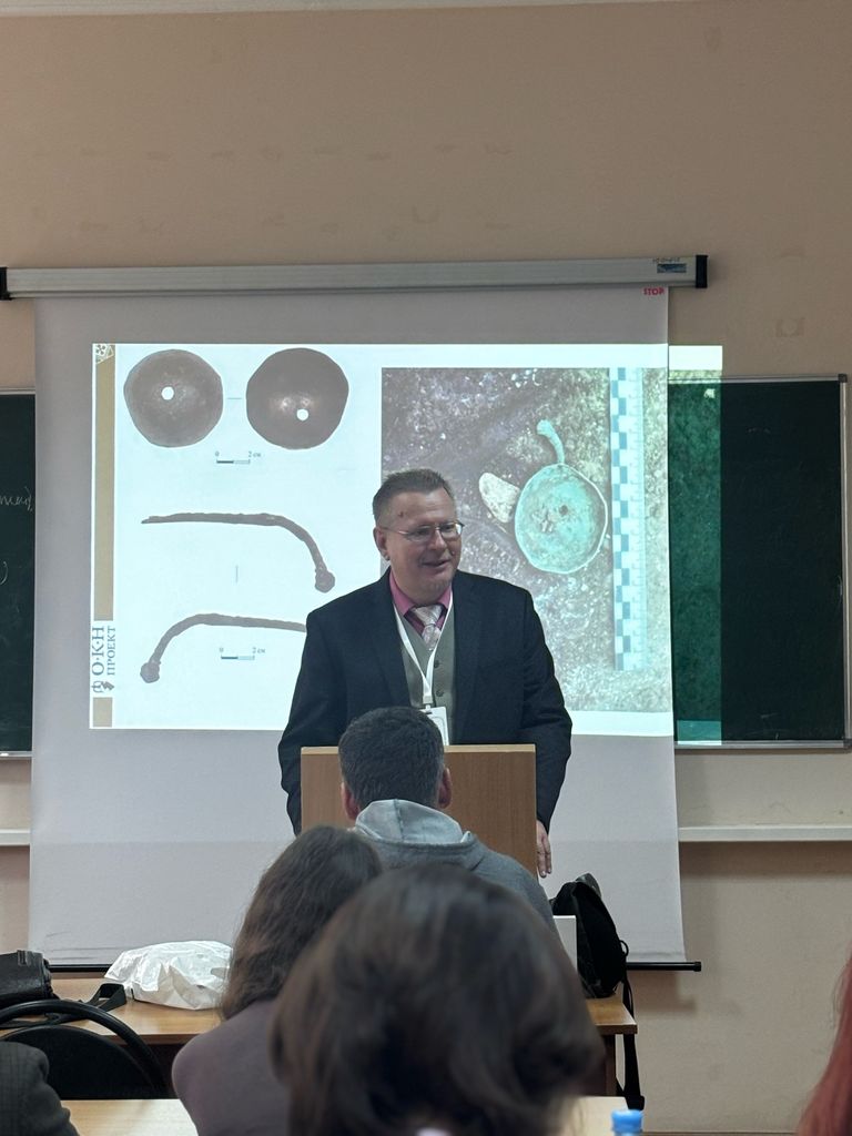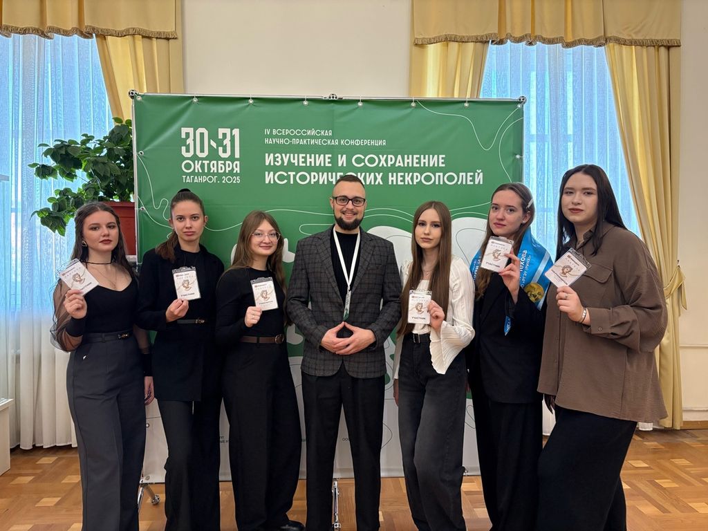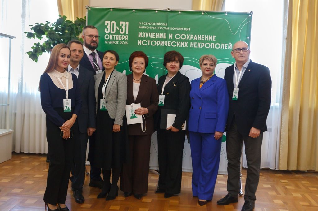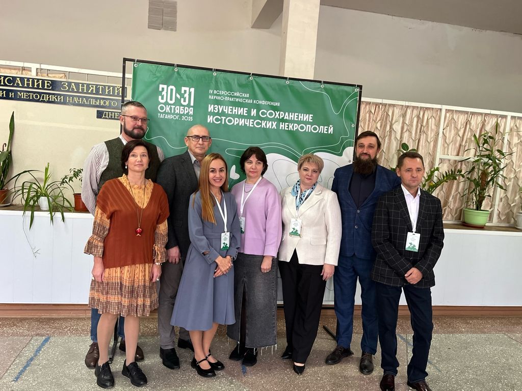Новости все 11 ноября, 2025 IV Всероссийская научно-практическая конференция «Изучение и сохранение исторических некрополей»В Таганроге состоялось открытие IV Всероссийской научно-практической конференции «Изучение и сохранение исторических некрополей». На протяжении ряда лет научное событие объединяет исследователей исторических некрополей и археологов из разных регионов Российской Федерации, множится число участников и расширяется количество тематических направлений работы. В этом году организаторами конференции выступили факультет истории и филологии Таганрогского института имени А. П. Чехова (филиала) РГЭУ (РИНХ), Таганрогский государственный литературный и историко-архитектурный музей-заповедник, Общество с ограниченной ответственностью «ОКН-проект», Государственный архив Ростовской области, традиционно при поддержке ИП Е. А. Алексеенко. Первый день конференции проходил на базе Литературного музея А. П. Чехова Таганрогского государственного литературного и историко-архитектурного музея-заповедника, где состоялось пленарное заседание. С приветственными словами к участникам конференции обратились директор Таганрогского института имени А. П. Чехова (филиала) РГЭУ (РИНХ), кандидат философских наук, доцент С. А. Петрушенко, директор ГБУК РО «Таганрогский государственный литературный и историко-архитектурный музей-заповедник» (ТГЛИАМЗ) Е. В. Липовенко, директор общества с ограниченной ответственностью «ОКН-проект» (г. Ростов-на-Дону) Я.В. Прудников, независимый исследователь, смотритель муниципального казенного учреждения «Ритуал» (г. Таганрог) Е. А. Алексеенко. Модераторами пленарного заседания выступили заместитель директора Таганрогского института имени А.П. Чехова (филиала) РГЭУ (РИНХ) по научной работе и проектной деятельности, кандидат исторических наук, доцент Алексей Александрович Волвенко и декан факультета истории и филологии, кандидат исторических наук, доцент Валентина Анатольевна Агеева. В рамках пленарного заседания исследователи из разных регионов России представили результаты многолетних изысканий, посвящённых изучению некрополей, археологических памятников и проблем сохранения историко-культурного наследия. Тематика докладов охватила широкие хронологические и географические рамки. Одним традиционным направлением, представляемым в ходе работы конференции, является изучением захоронений и памятников периода Великой Отечественной войны. Большой интерес участников вызвал доклад канд. ист. наук, доцента В.А. Агеевой, в котором был представлен материал о злодеяниях зондеркоманды СС-10 А, размещавшейся в старинном здании бывшей мужской гимназии г. Таганрога. Доклад также осветил историю с обнаружением рва с останками жертв в 1957 году и проблему неустановленного места их перезахоронения. Второй день IV Всероссийской научно-практической конференции «Изучение и сохранение исторических некрополей» состоялся на базе факультета истории и филологии Таганрогского института им. А.П. Чехова (филиал) РГЭУ (РИНХ). Работа проходила по четырем тематическим секциям. В рамках секции «Археология погребений» в докладах участников поднимались вопросы исследовательской работы археологических памятников и комплексов на территории юга России. Докладчики представили свои наработки по вопросам изуче