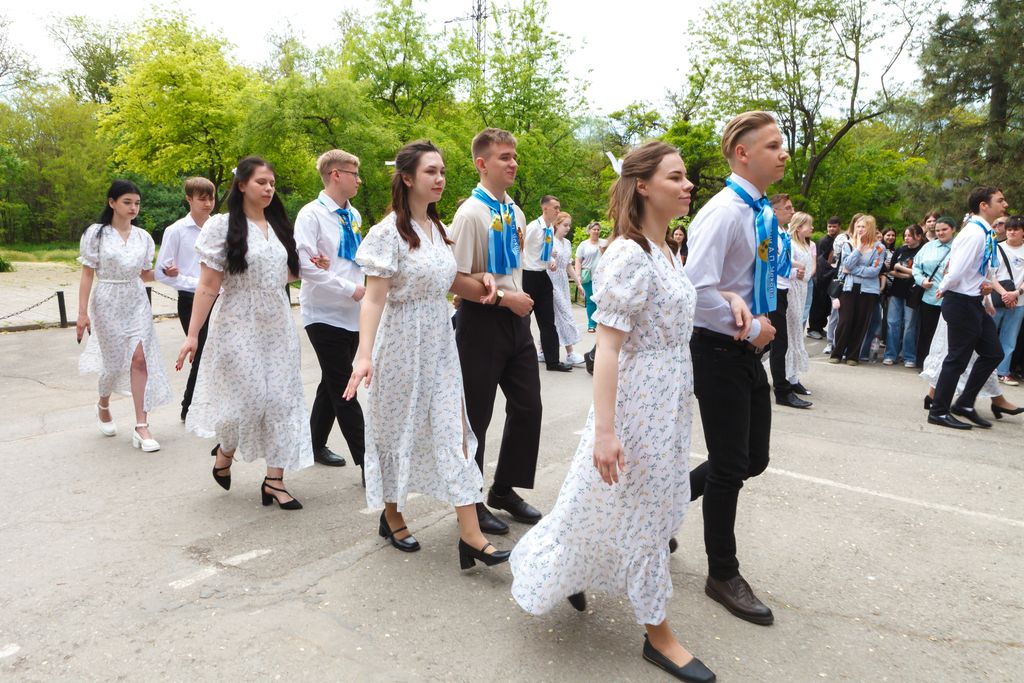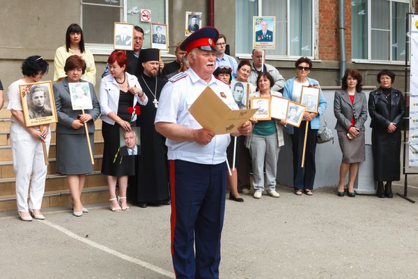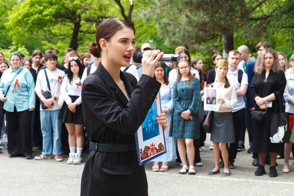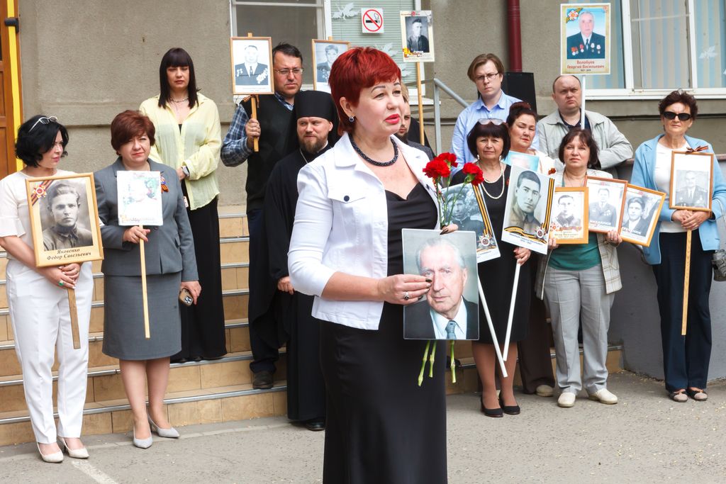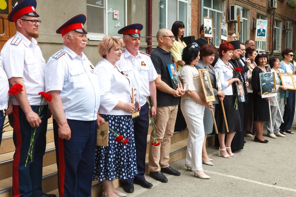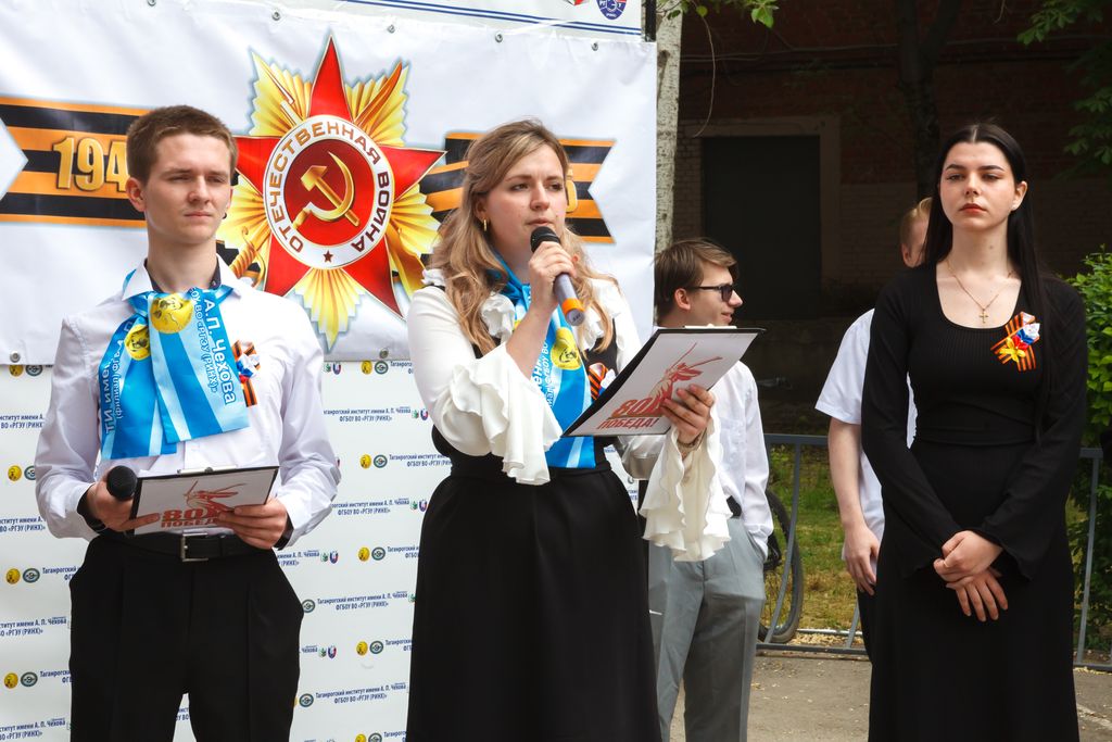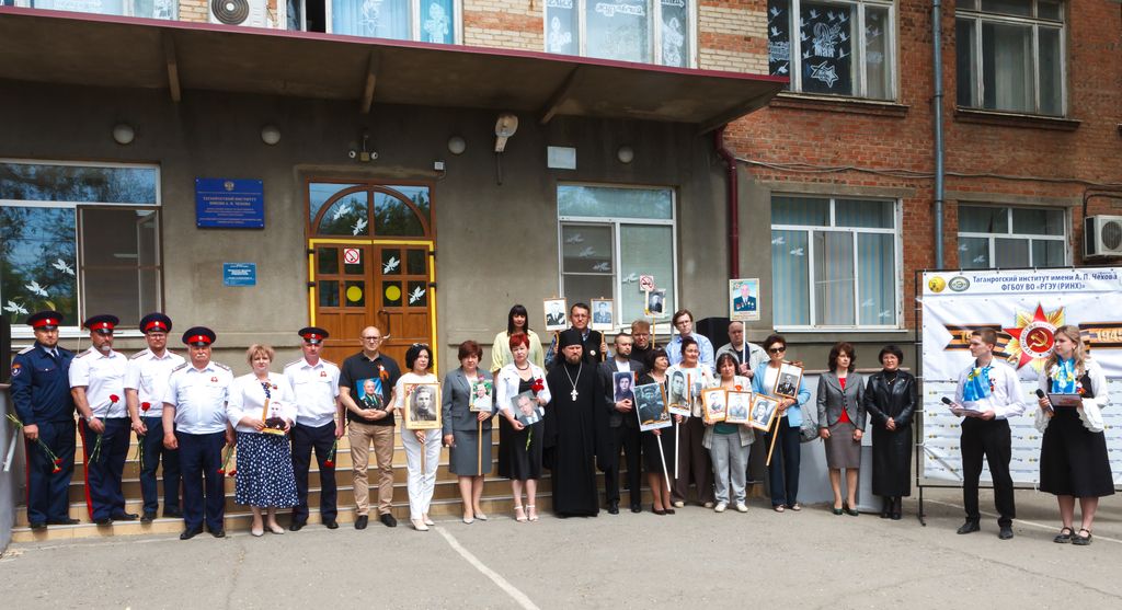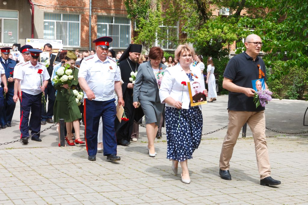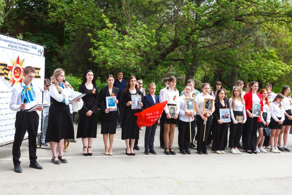 Новости все 12 мая, 2025 Торжественный митинг, посвященный 80-й годовщине Победы в Великой Отечественной войне 1941-1945 гг. «Дорогами бессмертного полка» на факультете истории и филологииТоржественный митинг, посвященный 80-й годовщине Победы в Великой Отечественной войне 1941-1945 гг.: «Дорогами бессмертного полка» состоялся на факультете истории и филологии. В нем приняли участие администрация Таганрогского института имени А.П. Чехова (филиала) РГЭУ (РИНХ), студенты, магистранты и профессорско-преподавательский состав факультета, казаки юртового казачьего общества «Неклиновский юрт» во главе с атаманом В.П. Дьяченко, учащиеся психолого-педагогического класса МОБУ СОШ № 20 г. Таганрога, студенты Таганрогского механического колледжа. С приветственными словами к участникам обратились директор Таганрогского института имени А.П. Чехова, канд. филос. наук С.А. Петрушенко, настоятель храма Иерусалимской иконы Божией Матери иеромонах Пимен, председатель Совета стариков Таганрогского округа войскового казачьего общества «Всевеликое войско Донское» Е.Ф. Бережной, директор школы № 20 г. Таганрога, канд. филол. наук Е.В. Шутова, заместитель директора ТИ имени А.П. Чехова по научной работе и проектной деятельности, председатель общественного совета департамента по делам казачества и кадетских учреждений Ростовской области , канд. ист. наук А.А. Волвенко, декан факультета истории и филологии, канд. ист. наук В.А. Агеева. Мероприятие включало в себя торжественную часть, в рамках которой студенты факультета истории и филологии и обучающиеся МОБУ СОШ № 20 г. Таганрога под руководством доцента кафедры истории, канд. филос. наук И.В. Наливайчеко читали стихи, пели песни военной тематики. Венский вальс для участников митинга исполнили студенты 2 курса факультета истории и филологии. Кульминацией митинга стало шествие «Бессмертного полка» участников мероприятия, которые вместе со своими родными и близкими пронесли портреты преподавателей-фронтовиков факультета истории и филологии: Михаила Дмитриевича Бочарова, Петра Вениаминовича Чеснокова, Виталия Дмитриевича Седегова и Ивана Дмитриевича Козубенко. Они на своих плечах вынесли тяготы войны, а после несли свет просвещения следующим поколениям студенчества. Помять о них, как и обо всех фронтовиках и жертвах нацистского режима, будет вечно жить в наших сердцах. Пронзительно глубокой по своему смысловому наполнению в контексте памятных мероприятий стала песня «Бессмертный полк», исполненная студенткой четвертого курса Е. Толстовой. В завершение мероприятия были возложены цветы к бюсту донского атамана, героя Отечественной войны 1812 г. М.И. Платова, который установлен у административного корпуса института и символизирует собой отвагу и мужество российского воинства, защищающего рубежи нашего Отечества во все времена и отстаивающего суверенитет нашей страны и сегодня в зоне Специальной военной операции. Не прерывая связь времен, делегация в составе декана факультета истории и филологии канд. ист. наук В.А. Агеевой, зам. декана по ВР ФИиФ Е.Н. Капканова и студентов первого курса возложили цветы к памятнику «Вечная слава героям-милиционерам», героически защищавшим г. Таганрог в октябре 1941 г. от немецко-фашистских захватчиков. |