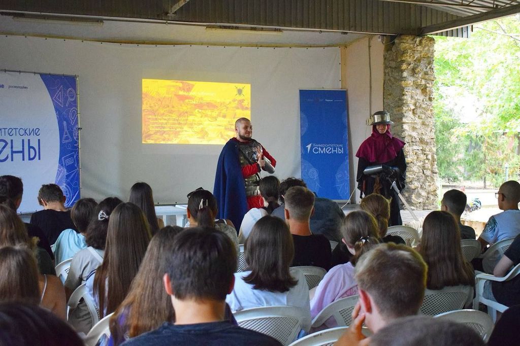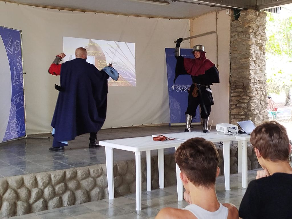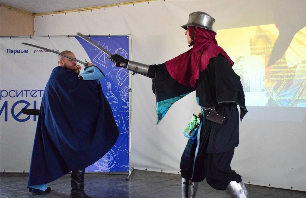 Новости все 12 августа, 2025 Факультет истории и филологии провел научно-просветительское занятие в рамках проекта «Университетские смены-2025»Для участников программы «Шаг в будущее», реализуемой в рамках проекта «Университетские смены-2025», на площадке СОЛ «Ивушка» под руководством декана факультета истории и филологии, канд. ист. наук, доцента В.А. Агеевой состоялось мероприятие «Средневековье на Дону и в Приазовье». Тематическое занятие, посвященное истории заселения и освоения Донского края и Приазовья древними русичами, провел доцент кафедры истории П.С. Качевский. Он рассказал о том, как разворачивался важнейший общественно-политический процесс славяно-русской колонизации Приазовья и Нижнего Дона в период X-XIII вв., какими были городские и сельские поселения древнерусских жителей, их образ жизни и религия, как они взаимодействовали с соседними народами Степи – хазарами, печенегами и половцами, торговали и иногда враждовали с византийскими греками. Продолжили образовательный интенсив руководитель клуба военно-исторической реконструкции факультета истории и филологии «Сварог» С. Яцун и его заместитель Г. Цыганенко. В рамках интерактивного занятия слушатели узнали о вооружении и военной тактике древнерусских дружинников времен великого князя Александра Невского и сложном политическом и социальном контексте эпохи русского Средневековья, особенно периода XIII века. «Свароговцы» профессионально отвечали на многочисленные вопросы заинтересованной аудитории о том, как изготавливали вооружение русские ремесленники, сколько оно стоило в то время, каков был общий вес доспехов древнерусского воина – защитника родной земли от нашествий западных крестоносцев и восточных кочевников. В завершении занятия студенты представили инсценировку сражения русского богатыря с немецким рыцарем-крестоносцем Тевтонского Ордена. |