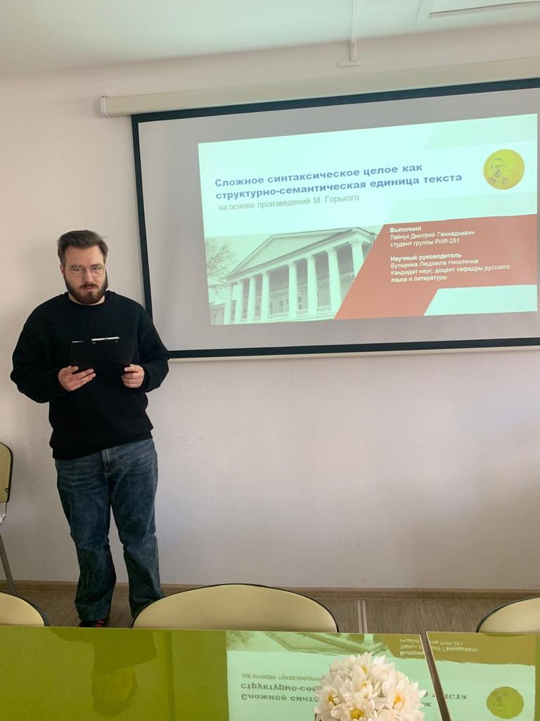 Новости все 14 апреля, 2025 Итоги 68-ой внутривузовской студенческой научной конференции на кафедре русского языка и литературы8 апреля на факультете истории и филологии состоялось заседание филологических секций в рамках 68-ой внутривузовской студенческой научной конференции. В работе пяти секций приняли участие студенты очной и заочной форм обучения бакалавриата и магистратуры. С приветственным словом к участникам обратились руководитель СНО Таганрогского института имени А.П. Чехова канд. пед. наук, доцент Е.А. Першонкова, декан факультета истории и филологии канд. ист. наук, доцент В.А. Агеева, заведующий кафедрой русского языка и литературы канд. филол. наук, доцент Т.М. Субботина, руководитель Научно-просветительского центра изучения русского языка и литературы имени А.П. Чехова канд. филол. наук, доцент О.А. Яковлева. В работе секции «Проблемы изучения и преподавания русского языка» приняли участие студенты 5 курса и магистранты 1 года обучения. Были прочитаны доклады, посвященные рассмотрению актуальных проблем изучения современного русского языка. Наибольший интерес вызвал доклад Надолинской Марии, в котором была показана стилистическая роль морфологический форм. Кроме того, жюри особо отметило доклады Д. Лайчук и Е. Дерачиц. На заседании секции «Проблемы изучения русского языка: лексикология, стилистика» было заслушано десять докладов, в которых были представлены итоги исследовательской работы студентов в рамках выпускных квалификационных работ и промежуточные результаты разработки тематики магистерских диссертаций. В представленных исследованиях четко прослеживаются основные подходы к изучению языковых единиц: с точки зрения истории языка (работы Е. Евсеевой, Д. Заикиной, С. Маркияновой, Е. Русол) и с точки зрения стилистики текста (работы А. Васильевой, Т. Галицкой, Р. Дьяконова, Я. Котлярова, Т. Кнуревой). По результатам работы секции лучшими были признаны доклады Е. Евсеевой (1 место), С. Маркияновой (2 место), Е. Русол (3 место). Доклады, прозвучавшие на заседании секции «Русская литература: вопросы поэтики», были посвящены вопросам поэтики русской литературы XIX – XX вв. Докладчики показали знание историко-литературного материала и умение анализировать художественные произведения русской классики (студентки П. Панчишко, Д. Рогачёва, Е. Неронова), эпохи модернизма (Е. Данильченко, Е. Скоробогатова, С. Якубенко), а также советского времени (А. Симукова). Доклады вызвали вопросы слушателей и заинтересованное обсуждение аудитории. На заседании секции «Проблемы изучения и преподавания русской литературы ХIX – XX вв.» было представлено 13 докладов самой разнообразной тематики. Студентов-исследователей интересовали вопросы интерпретации произведений в части выявления культурно-исторических смыслов, жанровой специфики, цветовой картины мира, природы художественной образности и проблематики. Несколько докладов были посвящены актуальным вопросам методики преподавания литературы. Награды жюри были присуждены А. Аксеновой (1-е место), Е. Поляковой (2 место); А. Приставчук (3 место). В качестве научных руководителей и научных консультантов в работе филологических секций приняли участие преподаватели кафедры О.А. Яковлева, Н.М. Ким, С.Г. Букаренко, С.Н. Зотов, С.В. Смоличева, З.Г. Стародубцева, В.В. Кондратьева, И.Э. Голобородько, Л.Н. Бу