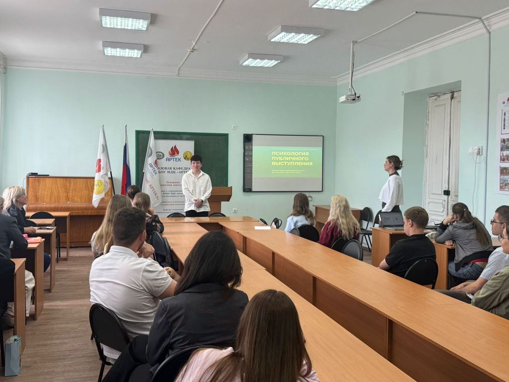 Новости все 15 мая, 2025 Кафедра психолого-педагогического образования и медиакоммуникации продолжает реализацию проекта «Педагог-психолог: путь в профессию» для психолого-педагогических классов МАОУ СОШ № 12 г. ТаганрогаПри активной поддержке руководства Таганрогского института имени А.П. Чехова (филиала) ФГБОУ ВО «РГЭУ (РИНХ)» и Управления образования г. Таганрога продолжается реализация проекта «Педагог-психолог: путь в профессию», организованный кафедрой психолого-педагогического образования и медиакоммуникации под руководством канд. пед. наук, доцента И.В. Челышевой и МАОУ СОШ № 12 г. Таганрога. 14 мая 2025 года состоялась очередная встреча коллектива кафедры и обучающихся психолого-педагогического класса. Ассистент кафедры психолого-педагогического образования и медиакоммуникации Е.М. Купарева совместно с актрисой театра им. А.П. Чехова З.Э. Лазовской организовали и провели тренинговое занятие на тему «Психология публичного выступления». На занятии ребята узнали о причинах страха публичных выступлений, психологических особенностях личности оратора, о способах преодоления волнения. Участники активно задавали вопросы, З.Э. Лазовская поделилась опытом выступлений на профессиональной сцене и методами регуляции своего эмоционального состояния перед спектаклем, Е.М. Купарева рассказала участникам о психологии выступления и методиках работы со страхом в телесно-ориентированном подходе. Все ребята проявили живой интерес и с удовольствием приняли участие в тренинге. Благодарим директора МАОУ СОШ № 12 г. Таганрога А.В. Кондрахина и весь педагогический коллектив школы за сотрудничество! Выражаем благодарность обучающимся психолого-педагогических классов МАОУ СОШ № 12 г. Таганрога за активное участие! Проект «Педагог-психолог: путь в профессию» продолжается! |
