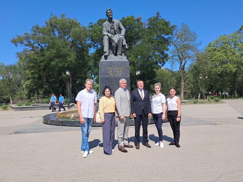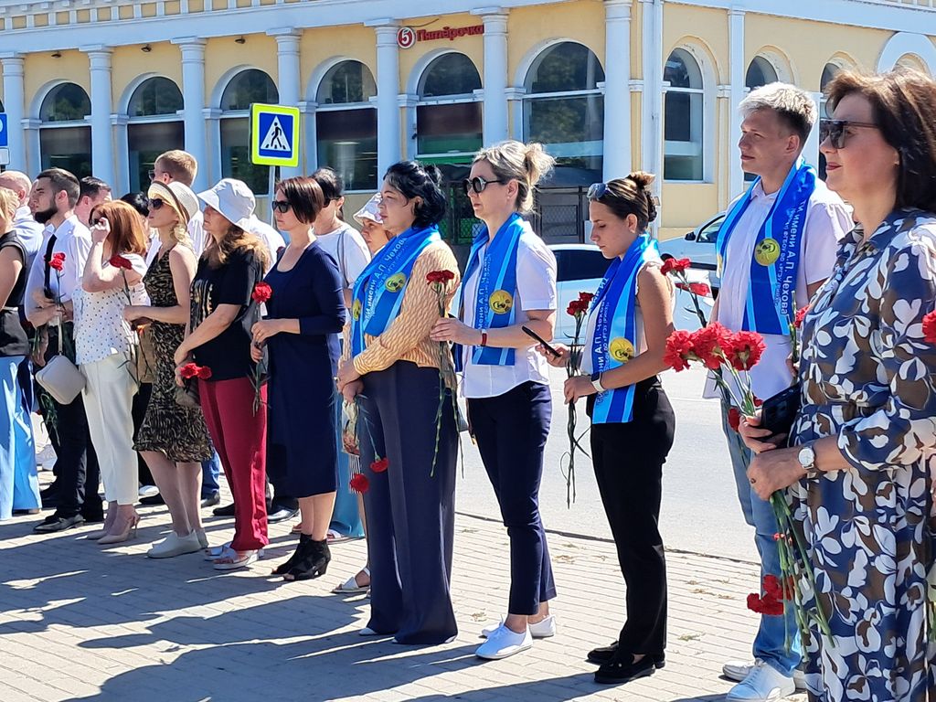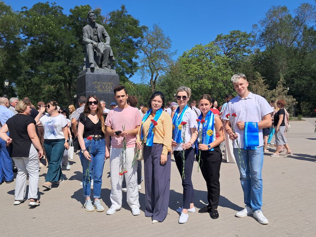 Новости все 16 июля, 2025 Сотрудники и студенты Таганрогского института имени А.П. Чехова – участники городского мероприятия,посвященного дню памяти А.П. Чехова15 июля 2025 года, в день памяти выдающегося русского писателя и драматурга Антона Павловича Чехова, в городе Таганроге в сквере имени А.П. Чехова на Красной площади состоялась традиционная церемония возложения цветов к памятнику писателя. В мероприятии приняли участие заместитель директора по учебно-воспитательной работе и молодежной политике И.Э. Голобородько, начальник отдела воспитательной и профориентационной работы, организационного сопровождения деятельности и развития карьеры О.А. Липовая, сотрудники и студенты Таганрогского института имени А.П. Чехова. С приветственным словом к собравшимся обратились Глава Администрации города Таганрога Светлана Анатольевна Камбулова, Председатель Городской Думы города Таганрога Роман Валерьевич Корякин. Выступающие отметили невероятный масштаб уникальной и разносторонней личности А.П. Чехова, подчеркнули ценность, современность и востребованность произведений нашего великого земляка. И, конечно, выразили слова благодарности Антону Павловичу за великий вклад в развитие культуры России и Таганрога. В завершении праздничного мероприятия к памятнику А.П. Чехову возложили цветы представители администрации города Таганрога, депутаты Городской Думы, студенты и сотрудники Таганрогского института имени А.П. Чехова, актёры Таганрогского драматического театра имени А.П. Чехова, сотрудники историко-краеведческого музея, представители общественных организаций и молодежь города Таганрога. Также в этот день в Таганроге проводятся тематические выставки, экскурсии, литературно-музыкальные вечера, творческие встречи и другие мероприятия, посвященные жизни и творчеству великого писателя. День памяти Чехова - настоящий праздник для всех жителей города Таганрога! |