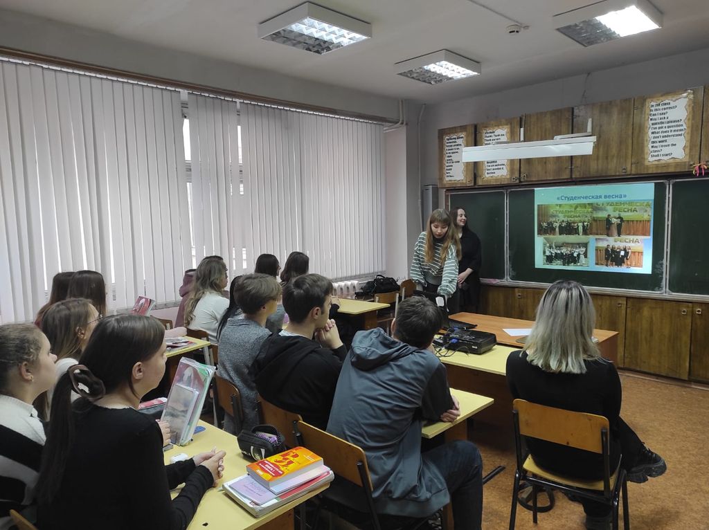 Новости все 17 января, 2025 Профориентационная работа студентов группы ИЯ-321 в МОБУ СОШ №38 г. Таганрога16 января 2024 года студенты группы ИЯ-321 Трунова Ирина, Минасян Руслан, Кузнецова Татьяна провели профориентационную работу среди учеников 10 и 11 классов школы №38(МОБУ СОШ №38). Ребята рассказали старшеклассникам о факультете иностранных языков Таганрогского института имени А.П. Чехова: как можно туда поступить, какие предметы нужно сдавать на ЕГЭ, какие языки можно изучить. Студенты показали презентацию о Таганрогском институте имени А.П. Чехова, рассказали об интересной и насыщенной жизни в институте и на факультете подчёркивая, что на факультете иностранных языков можно не только заниматься учёбой, но и принимать участие в разных мероприятиях, ежегодных факультетских, институтских, межуниверситетских конкурсах. Внимание слушателей было обращено также на наличие интересных кружков в Таганрогском институте имени А.П. Чехова, где каждый человек может проявить свой талант. Старшеклассники проявили большой интерес к факультету иностранных языков. Студенты раздали им памятные буклетики и пригласили в гости в институт. |