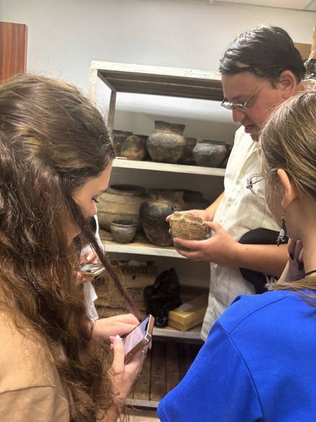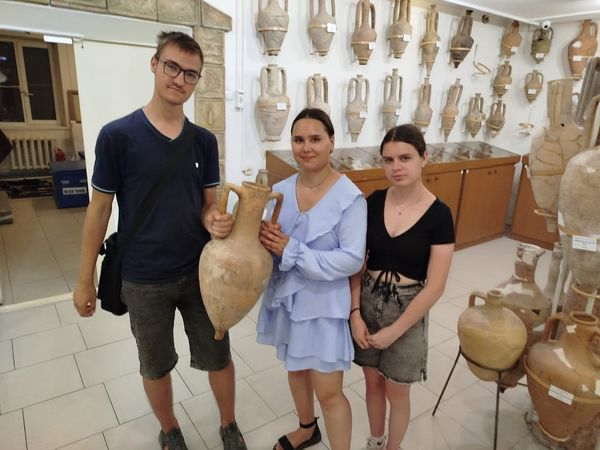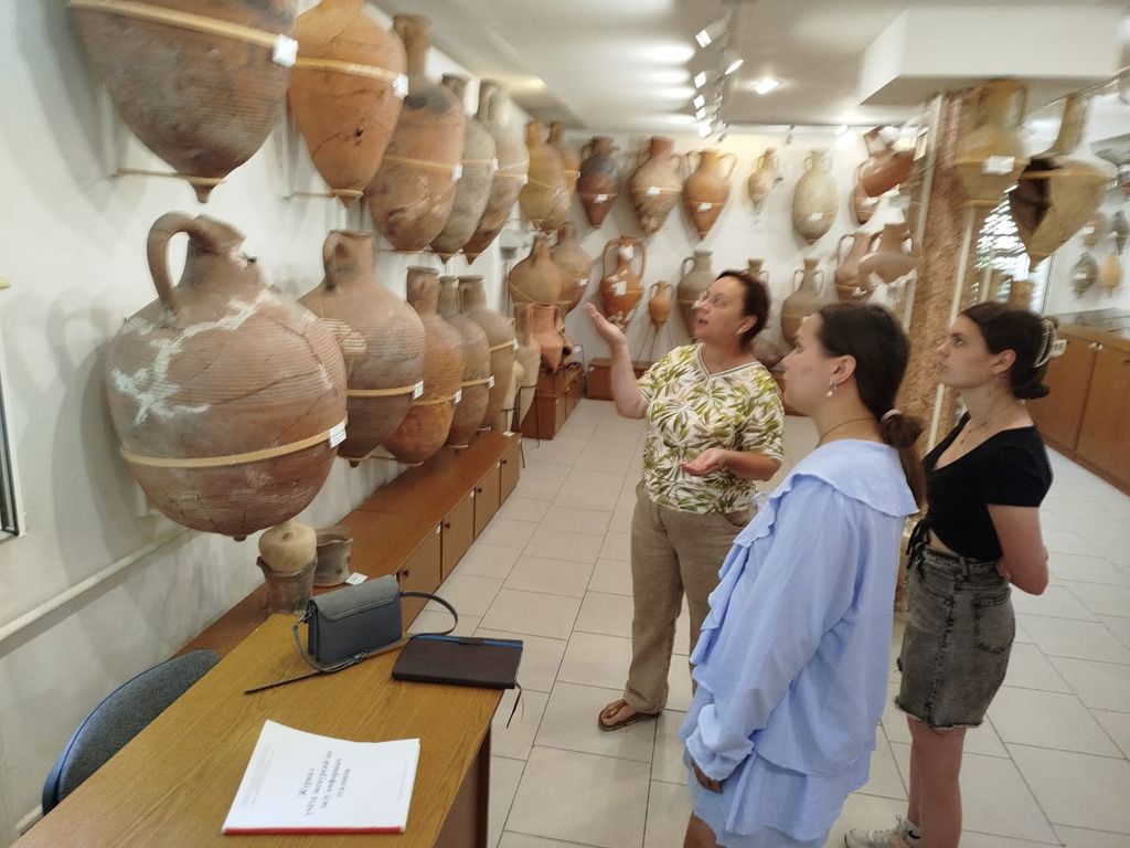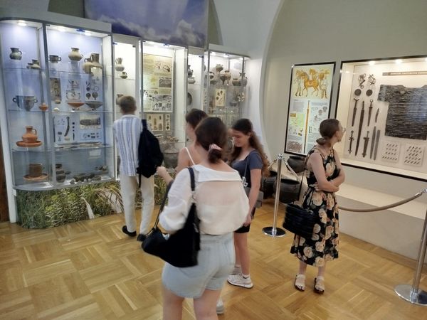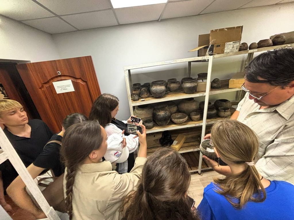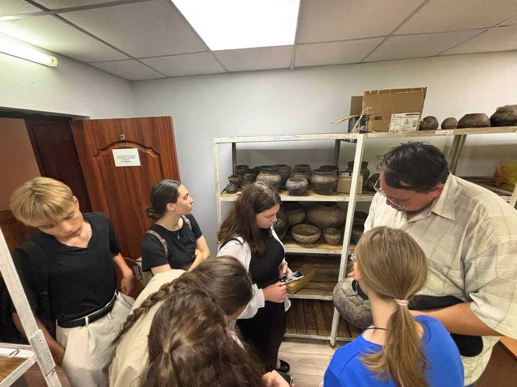 Новости все 17 июля, 2025 Продолжается учебная археологическая практика студентов факультета истории и филологии...Вторая неделя ознакомительной археологической практики студентов первого курса очной формы обучения, профиль «История и Музейное дело» прошла преимущественно в археологическом музее-заповеднике «Танаис». В ходе прохождения археологической практики студенты с помощью научного сотрудника музея-заповедника «Танаис» О. Каплич своими руками освоили древние технологии производства керамической посуды на гончарном круге, а также овладели приемами ее ручной лепки из глины. Помимо этого, студенты приняли участие в мастер-классе О. Каплич, посвященном технике изготовления войлочных текстильных изделий древними кочевниками Приазовья и Нижнего Дона. Изучили практиканты научные публикации сотрудников музея-заповедника «Танаис» В.И. Перевозчикова, И.В. Толочко и других, посвященные актуальным проблемам истории и археологии Танаиса и всего Донского региона в эпоху древности и в Средневековье. Особое внимание студентов вызвали археологические керамические сосуды из раскопок курганных погребений бронзового века, хранящиеся в коллекциях музея-заповедника «Танаис». Заинтересовала их и лекция главного реставратора музея А. Буденко о правилах и проблемах процесса музейной реставрации оборонительных стен Танаиса и его жилых помещений, проведенная на городище позднеантичного времени. Уникальную возможность совершить экскурсию в Зал амфорных раритетов Танаиса наши практиканты получили в последний день прохождения практики, благодаря содействию заместителя директора музея по научной работе И. В. Толочко. Помимо Танаиса, наши практиканты под руководством доцента кафедры истории П.С. Качевского осуществили полевую археолого-палеонтологическую разведку на местонахождении «Мержаново», где провели сбор подъемного костного и керамического материала – артефактов эпохи древнекаменного века и периода Средневековья. Увлекательной и познавательной для наших студентов на завершающем этапе практики стала поездка в Азовский историко-археологический и палеонтологический музей-заповедник, организованная по инициативе декана факультета истории и филологии В.А. Агеевой. Осмотр археологических коллекций Зала «Сокровища донских степей», а также палеонтологической части экспозиции Азовского музея оставили яркие воспоминания у всех участников этой экскурсии в далекое и близкое прошлое нашего Донского края. |