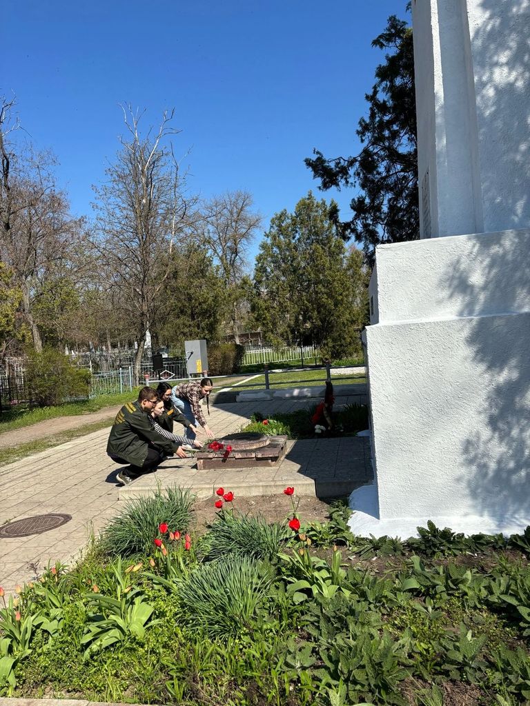 Новости все 18 апреля, 2025 Возложение цветов к братской могиле советских воинов, погибших в боях за Таганрог16 апреля 2025 года доценты кафедры биолого-географического образования и здоровьесберегающих дисциплин, кураторы студенческих групп профиля «Биология и география» Валентина Анатольевна Панова и Елена Алексеевна Першонкова в рамках плана мероприятий, приуроченных к 80-летию Великой Победы в Великой Отечественной войне и Году защитника Отечества, организовали поездку на Старое кладбище г. Таганрога с целью возложения цветов к братской могиле советских воинов, погибших во время Великой Отечественной войны. В поездке приняли участие студенты групп БГ-411, БГ-421 и БГ-431. Студенты и преподаватели возложили цветы к подножию памятника и почтили память погибших минутой молчания. |