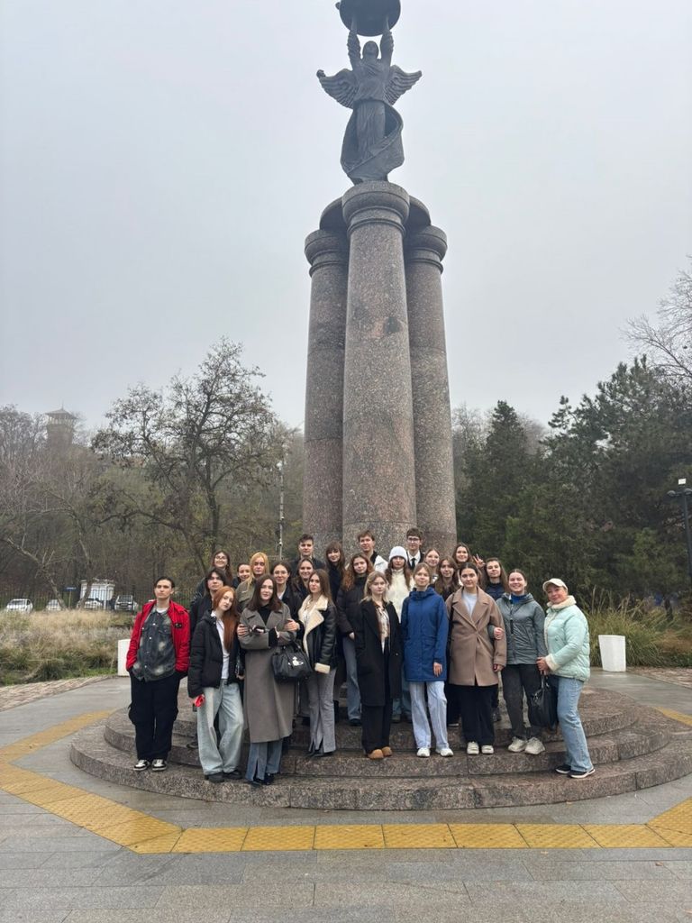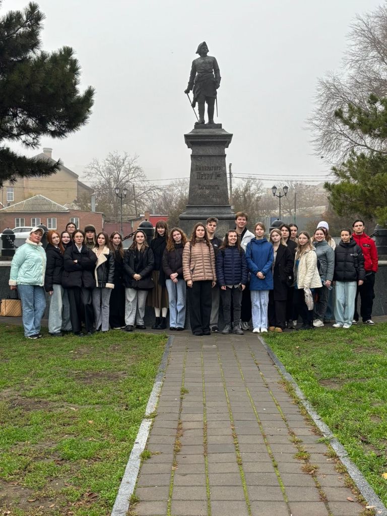 Новости все 18 ноября, 2025 Императорский Таганрог: наследие Петра Великого. Экскурсия на факультете иностранных языковСтуденты групп ИЯ-311 и ИЯ-312 факультета иностранных языков совершили захватывающую экскурсию по Петровским местам города Таганрога в рамках дисциплины «История России». Они получили уникальную возможность прикоснуться к истории российского государства и познакомиться с жизнью великого императора. Город Таганрог занимает особое место в истории нашей страны, ведь именно здесь Петр I заложил основы морского могущества России. Под руководством доктора исторических наук, профессора кафедры истории Н.В. Селюниной, ребята посетили Петровский сквер, где находится памятник Петру I, установленный в честь основания первого военного порта России. Этот монумент символизирует величие и мощь императорской власти, вдохновляя молодежь на патриотизм и уважение к историческому наследию своей Родины. Казармы Троицкой крепости – памятник зодчества конца XVIII века, сохранившиеся до наших дней в Таганроге. Сейчас они переданы историко-краеведческому музею-заповеднику, в планах реконструкция и создание музея. Студенты ознакомились с фрагментами расположенной на Петровской улице Троицкой крепости – фортификационного сооружения Российского государства, построенного на берегу Азовского моря на окончании мыса Таганий Рог. От Троицкой крепости ведет свою историю Таганрог. Далее маршрут был направлен к месту расположения палатки Петра I – по легенде она стояла там, где сейчас находится храм святителя Николая Чудотворца. Здесь можно было почувствовать атмосферу тех времен и лучше понять жизнь и быт первых русских моряков. Затем студенты посетили место, где была заложена Церковь во имя Святой Троицы – Храм первой военно-морской базы Российского государства, давший в Петровскую эпоху название городу Троицк. Далее спустились на Пушкинскую набережную и ознакомились с памятником 300-летия основания Таганрога – три колонны, символизирующие три столетия города, и изображение ангела-хранителя, держащего на поднятых руках чашу изобилия. Таганрог сыграл ключевую роль в развитии Российской империи и сегодня является символом эпохи Петра Великого, символизируя его стремление к укреплению обороноспособности страны и выходу России к морям, выполняя важные стратегические и экономические функции. Эта экскурсия стала незабываемым событием, которое обогатило знания студентов о русской истории и культуре, укрепив чувства гордости за свою страну и ее славное прошлое. |