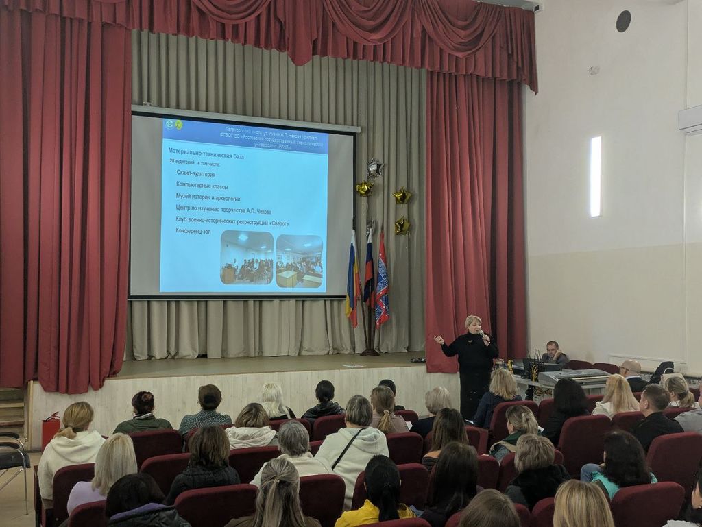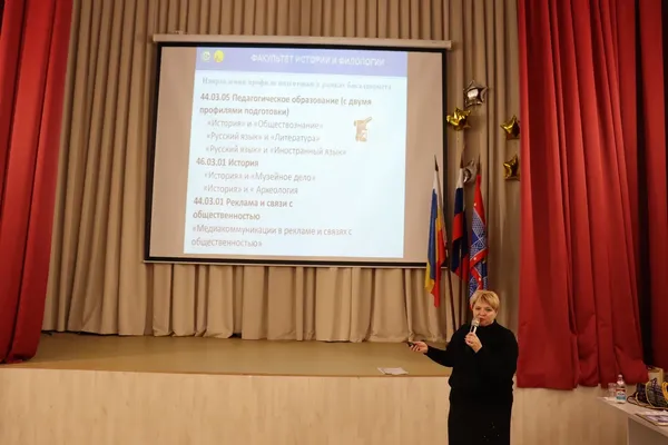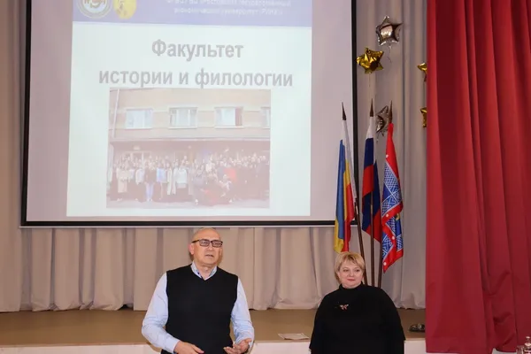 Новости все 19 ноября, 2025 Факультет истории и филологии провел профориентационную встречу с родителями выпускников Неклиновского района13 ноября заместитель директора по научной работе и проектной деятельности Таганрогского института имени А. П. Чехова, профессор кафедры истории Алексей Александрович Волвенко и декан факультета истории и филологии Валентина Анатольевна Агеева провели профориентационную встречу с родителями МБОУ Покровская СОШ «НОК». Открыла мероприятие директор школы Елена Анатольевна Тимошенко, представившая информацию о направлениях сотрудничества с факультетом истории и филологии, в том числе, в рамках договора о «Наставничестве». А.А. Волвенко и В. А. Агеева представили презентацию об учебной, научной и воспитательной работе факультета. Ключевой темой обсуждения стал набор на программы бакалавриата и магистратуры 2026 года. Участники детально рассмотрели особенности следующих профилей: · «История» и «Музейное дело»; ·«История» и «Археология»; · «Медиакоммуникации в рекламе и связях с общественностью». Встреча дала родителям возможность: ·получить исчерпывающую информацию об образовательных программах факультета истории и филологии; · узнать о перспективах профессионального роста для будущих выпускников; · задать вопросы представителям вуза и прояснить интересующие детали. |