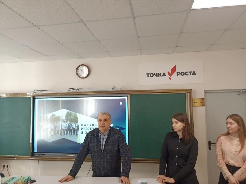 Новости все 20 марта, 2026 Профориентационная работа кафедры немецкого и французского языковВ рамках проведения профориентационных мероприятий, организованных факультетом иностранных языков, 19 марта 2026 г. с учащимися 10 - 11 классов МБОУ Покровской СОШ «Неклиновский образовательный комплекс» встретились доктор филологических наук, профессор кафедры немецкого и французского языков А.М. Червоный и студентка 5-го курса 352 гр. Дарья Гончар. Отрадно отметить, что учителем иностранных языков в этой в современной, прекрасно оборудованной школе работает в недавнем прошлом студентка факультета иностранных языков, магистрант кафедры немецкого и французского языков 2023-2026 г.г. Алена Сергеевна Сухоненко. В своем выступлении А.М. Червоный рассказал об историческом прошлом и настоящем дне Таганрогского института имени А.П. Чехова, о традициях и инновациях нашего учебного заведения, о специфике его факультетов, о специальностях, которые получают учащиеся вуза, о формах обучения, об условиях поступления в Таганрогский институт имени А.П. Чехова в 2026 г. А.М. Червоный рассказал о научной, культурной и воспитательной деятельности факультета иностранных языков, о грантовых программах, о международных связях факультета. Особенно подробно он остановился на учебной и методической работе кафедры немецкого и французского языков. В ходе беседы была также поднята тема трудоустройства и дальнейших жизненных и профессиональных перспектив выпускников факультета иностранных языков. Дарья Гончар и Алена Сергеевна Сухоненко дополнили выступление А.М. Червоного, они интересно рассказали о факультете, о своей насыщенной событиями студенческой жизни, о непростой, но интересной учебной деятельности, которая способствует реализации профессионального и личностного роста обучающихся. Выступающие показали презентацию, посвященную Таганрогскому институту имени А.П. Чехова (филиалу) «РГЭУ (РИНХ)» и факультету иностранных языков, раздали буклеты с актуальной информацией, ответили на вопросы учащихся. |