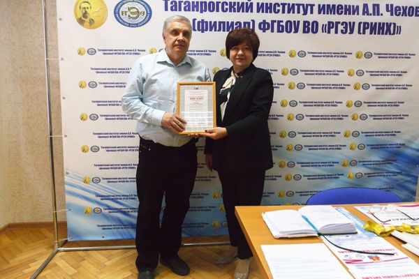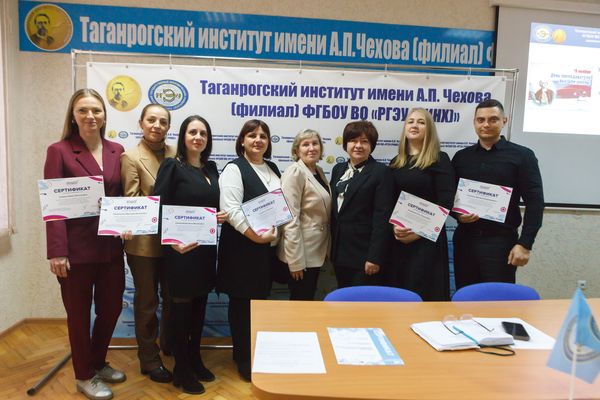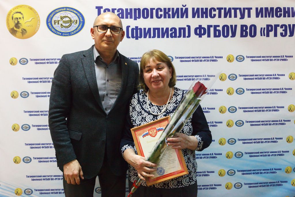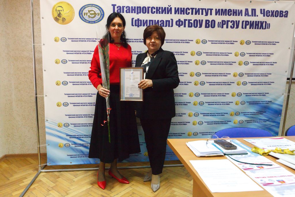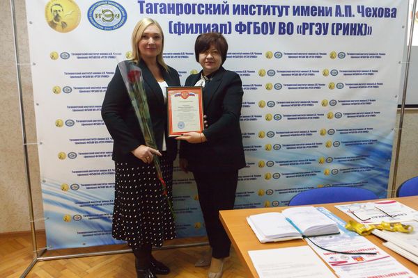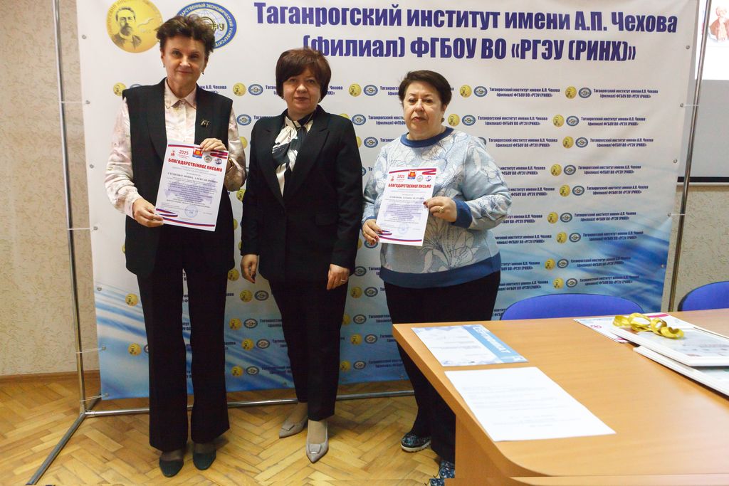 Новости все 20 ноября, 2025 Заседание Ученого совета Таганрогского института имени А.П. Чехова (филиала) РГЭУ (РИНХ)19 ноября 2025 года состоялось заседание Ученого совета Таганрогского института имени А.П. Чехова (филиала) РГЭУ (РИНХ). В начале заседания директор Таганрогского института имени А.П. Чехова (филиала) РГЭУ (РИНХ), кандидат философских наук, доцент Светлана Анатольевна Петрушенко поздравила членов Ученого совета, профессорско-преподавательский состав с Днем преподавателя высшей школы. От имени ректора РГЭУ (РИНХ), доктора экономических наук, профессора Елены Николаевны Макаренко в связи с юбилеем благодарственными письмами были отмечены: – доктор исторических наук, доцент, профессор кафедры истории Наталья Владимировна Селюнина; – кандидат педагогических наук, доцент, заведующий кафедрой психолого-педагогического образования и медиакоммуникации Ирина Викториновна Челышева; – кандидат физико-математических наук, доцент кафедры информатики Елена Сергеевна Арапина-Арапова; – кандидат искусствоведения, доцент, доцент кафедры педагогики дошкольного, начального и дополнительного образования Ирина Ивановна Топилина; – руководитель учебно-производственной практики УМО Наталия Александровна Киселева. В связи с 70-летием вуза директор Таганрогского института имени А.П. Чехова (филиала) РГЭУ (РИНХ), кандидат философских наук, доцент Светлана Анатольевна Петрушенко вручила благодарственные письма и памятные нагрудные знаки следующим сотрудникам института: – благодарственным письмом Городской Думы города Таганрога отмечена архивариус Лариса Владимировна Животовская; – благодарственное письмо ректора РГЭУ (РИНХ) было вручено доктору педагогических наук, профессору, профессору кафедры педагогики дошкольного, начального и дополнительного образования Татьяне Васильевне Надолинской; – памятным нагрудным знаком «Заслуженный сотрудник университета» отмечена кандидат педагогических наук, доцент кафедры педагогики дошкольного, начального и дополнительного образования Ирина Евгеньевна Буршит; – памятный нагрудный знак «Ветеран труда РИНХА» вручен доктору философских наук, доценту, профессору кафедры экономики и гуманитарно-правовых дисциплин Андрею Витальевичу Шолохову; – памятным нагрудным знаком «Медаль имени Авдея Ильича Гозулова» отмечен кандидат технических наук, доцент, доцент кафедры математики и физики Владимир Николаевич Сёмин. Благодарственное письмо Главы Неклиновского района за значительный вклад в укрепление делового и профессионального партнерства с системой образования Неклиновского района Ростовской области и в связи с 70-летием со дня основания Таганрогского института имени А.П. Чехова (филиала) РГЭУ (РИНХ) вручено доценту кафедры физической культуры Ирине Герардовне Лебединской. Благодарственными письмами Международного Союза писателей и мастеров искусств отделения МСПМ по ЮФО РФ отмечены доктор филологических наук, доцент, профессор кафедры немецкого и французского языков Александр Михайлович Червоный и кандидат филологических наук, доцент, доцент кафедры английского языка Татьяна Георгиевна Кликушина. Благодарственные письма Управления образования Неклиновского района за плодотворную деятельность в воспитании духовности, гражданственности и патриотизма у детей и мо