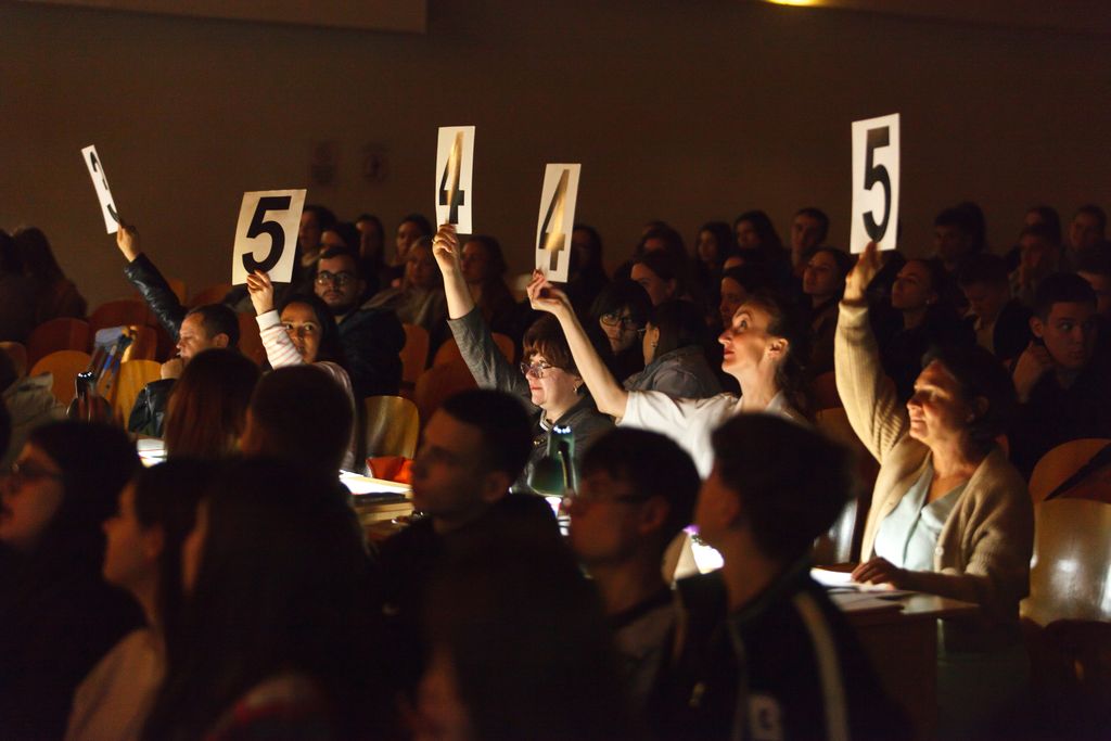 Новости все 22 октября, 2025 Новый сезон Лиги КВН в Таганрогском институте имени А.П. Чехова21 октября 2025 года в Таганрогском институте имени А.П. Чехова был открыт новый сезон Лиги КВН. В сезон 2025 года вошли следующие команды Таганрогского института имени А.П. Чехова: «ООООООООрррр» (команда факультета физики, математики, информатики), «Элегантные эспэошники» (команда СПО), «Поехали» (команда факультета экономики и права), «Трое, считая гуся» (сборная факультетов: истории и филологии, педагогики и методики дошкольного, начального и дополнительного образования), «Без Дам» (команда факультета педагогики и методики дошкольного, начального и дополнительного образования). В качестве приглашенного гостя выступила школьная команда КВН «И смех, и грех» города Таганрога (руководитель - Левченко Ангелина Сергеевна, выпускница Таганрогского института имени А.П. Чехова). Открыла мероприятие директор Таганрогского института имени А. П. Чехова С.А. Петрушенко. Светлана Анатольевна подчеркнула неоценимую роль КВН-движения в формировании всесторонне развитой личности современного студента. В своем выступлении Светлана Анатольевна отметила, что уникальная атмосфера Лиги КВН Таганрогского института имени А.П.Чехова служит мощным катализатором для раскрытия творческого потенциала молодежи, способствуя развитию нестандартного мышления, остроумия и артистизма, в процессе подготовки и реализации выступления обучающиеся осваивают искусство командного взаимодействия, учатся брать на себя ответственность, грамотно распределять роли и эффективно работать на общий результат. Эти навыки, выходящие далеко за рамки учебной программы, являются бесценным багажом, который, без сомнения, станет прочным фундаментом для будущей профессиональной реализации обучающихся Таганрогского института имени А.П. Чехова. Также Светлана Анатольевна провела церемонию награждения активных КВН-щиков нашего института. За весомый вклад в развитие юмористической культуры вуза, а также за плодотворную работу по организации культурного досуга обучающихся Благодарственными письмами от Администрации Таганрогского института имени А.П. Чехова были отмечены: ·Грязнова Наталья Георгиевна - руководитель команды КВН «Сборная ТИ имени А.П. Чехова "Таганий берег"»; ·Бондаренко Елизавета Владимировна - выпускница Таганрогского института имени А.П. Чехова, актриса команды КВН «Сборная ТИ имени А.П. Чехова "Таганий берег"»; ·Левченко Геннадий Александрович - магистрант группы ИНФG-111 факультета физики, математики, информатики Таганрогского института имени А.П. Чехова; ·Голобородько Дарья Андреевна - студентка группы ИЯ-352 факультета иностранных языков Таганрогского института имени А.П. Чехова; ·Мирошниченко Василий Николаевич - студент группы ИО-251 факультета истории и филологии Таганрогского института имени А.П. Чехова; ·Щербак Николай Денисович - студент группы ИО-231 факультета истории и филологии Таганрогского института имени А.П. Чехова; ·Крысько Дарья Сергеевна - студентка группы НДО-441 факультета педагогики и методики дошкольного, начального и дополнительного образования Таганрогского института имени А.П. Чехова; ·Федоров Тимофей Вадимович - студент группы МДОП-431 факультета педагогики и методики дошкольного, начального и дополнительного образования Таганрогского