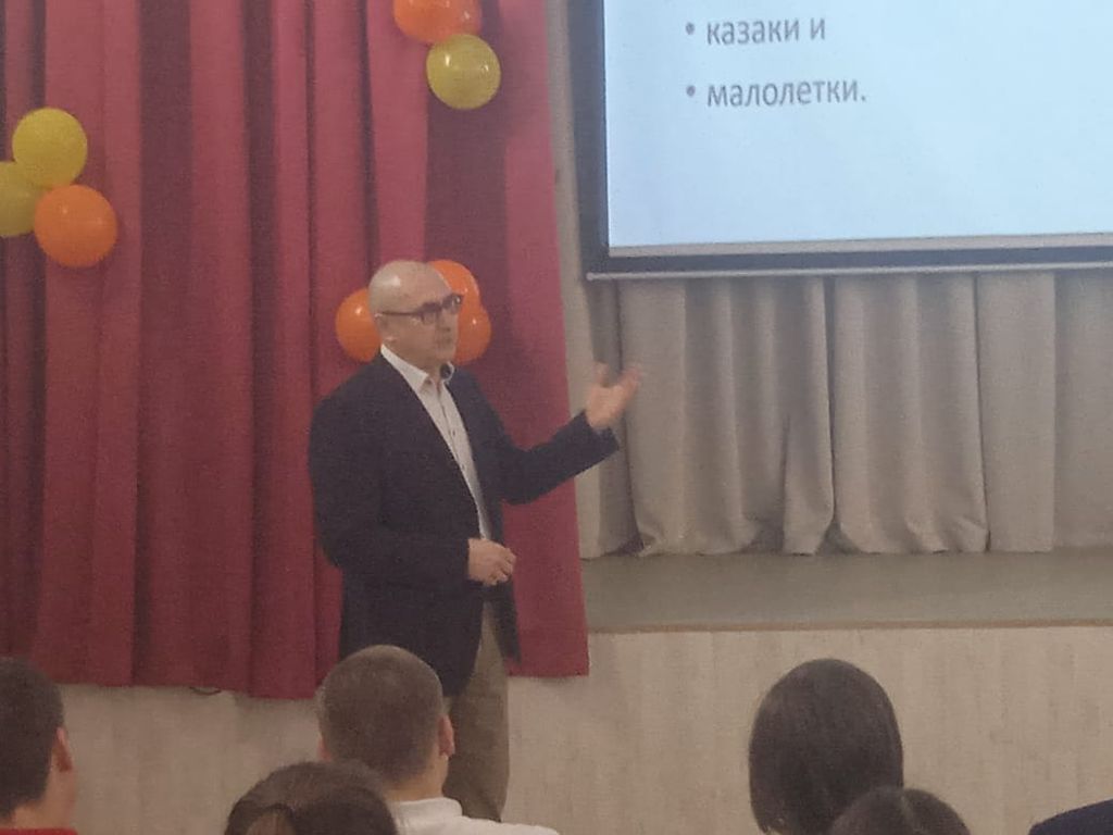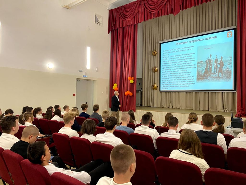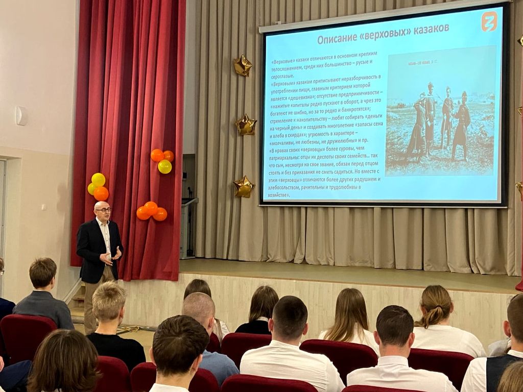 Новости все 23 апреля, 2025 Заместитель директора по научной работе и проектной деятельности Таганрогского института имени А.П. Чехова (филиала) РГЭУ (РИНХ) А.А. Волвенко – лектор Российского общества «Знание»Филиалом Российского общества «Знание» в Ростовской области запущен цикл мероприятий «Знание. История и традиции Дона», направленный на популяризацию изучения истории донского края и донского казачества, традиций и уникальности донской культуры. В рамках этой акции заместитель директора по научной работе и проектной деятельности Таганрогского института имени А.П. Чехова (филиала) РГЭУ (РИНХ), председатель общественного совета при Департаменте по делам казачества и кадетских учебных заведений РО, руководитель научной лаборатории «Казачество в истории и памяти» факультета истории и филологии, руководитель магистерской программы «Историческое образование в системе казачьих кадетских учебных заведений», кандидат исторических наук, доцент А.А. Волвенко прочитал публичную лекцию «Донское казачество во II половине XIX–начале XX вв.: этносоциальный облик». Мероприятие состоялось на площадке Покровская средняя общеобразовательная школа «Неклиновский образовательный комплекс», в нем приняли участие и обучающиеся казачьего класса под руководством учителя истории и обществознания И. А. Сухоненко. |