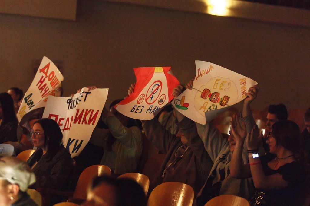 Новости все 23 апреля, 2025 ¼ Лиги КВН Таганрогского института имени А.П. Чехова22 апреля 2025 года в концертном зале Таганрогском институте имени А.П. Чехова состоялась 1/4 Лиги КВН. В игре приняли участие следующие команды: "Авось прокатит" (сборная факультетов: физики, математики, информатики; иностранных языков; экономики и права), "Орр" (сборная факультетов: физики, математики, информатики; педагогики и методики дошкольного, начального и дополнительного образования), "Трое, не считая гуся" (сборная факультетов: истории и филологии; педагогики и методики дошкольного, начального и дополнительного образования), "Без Дам" (команда факультета педагогики и методики дошкольного, начального и дополнительного образования) и две команды Политехнического института (филиала) ДГТУ в г. Таганроге: "Что-то на женском" и "Заниженные ожидания". Каждая команда-участница проявила себя в конкурсах: «Приветствие» и «Импровизация». Ведущие Лиги КВН: участницы команды КВН «Сборная ТИ имени А.П. Чехова»: Елизавета Бондаренко и Дарья Голобородько. Оценивало выступление команд компетентное жюри, в состав которого вошли: Ирина Эдуардовна Голобородько – председатель жюри, заместитель директора по УВР и МП Таганрогского института имени А.П. Чехова; Кирилл Юрьевич Лакаев - актер телевизионной команды КВН «Родина Чехова», участник «Премьер-лиги», директор МБУК «СКЦ «Приморский»; Николай Александрович Ткач - вице-чемпион и финалист Высшей лиги г. Москва в составе команды КВН «Ровеньки»; Дмитрий Вячеславович Меняйленко - автор команды КВН «Завод», директор ООО «Центр технологий» города Таганрога; Дмитрий Григорьевич Козоброд - участник Премьер-лиги КВН, актер, автор, шоумен; Наталья Георгиевна Грязнова - директор Лиги КВН Таганрогского института имени А.П. Чехова, специалист по работе с молодежью отдела воспитательной и профориентационной работы, организационного сопровождения деятельности и развития карьеры. В выступлениях командами были затронуты различные темы студенческой и повседневной жизни. Участники игры использовали все жанры юмористического арсенала: яркие миниатюры, острые репризы, юмористические песни. Подарком для зрителей и гостей мероприятия стало выступление команды КВН «Сборная ТИ имени А.П. Чехова». Результаты ¼ Лиги КВН распределились следующим образом: 6 место (6,9 баллов) - команда межфакультетского коллектива «Авось прокатит»; 5 место (7 баллов) - команда Политехнического института (филиала) ДГТУ в г. Таганроге "Заниженные ожидания"; 4 место (7,3 балла) - команда Политехнического института (филиала) ДГТУ в г. Таганроге "Что-то на женском"; 3 место (8,5 баллов) – команда межфакультетского коллектива "Трое, не считая гуся"; 2 место (9,4 балов) – команда межфакультетского коллектива «Орр». Победителем 1/4 Лиги КВН Таганрогского института имени А.П. Чехова стала команда "Без Дам" факультета педагогики и методики дошкольного, начального и дополнительного образования, набрав 9,7 балла. Поздравляем ребят с заслуженной победой! Участники команд КВН выражают глубокую благодарность администрации и деканскому корпусу Таганрогского института имени А.П. Чехова за всестороннюю поддержку и помощь в развитии КВН-движения! |