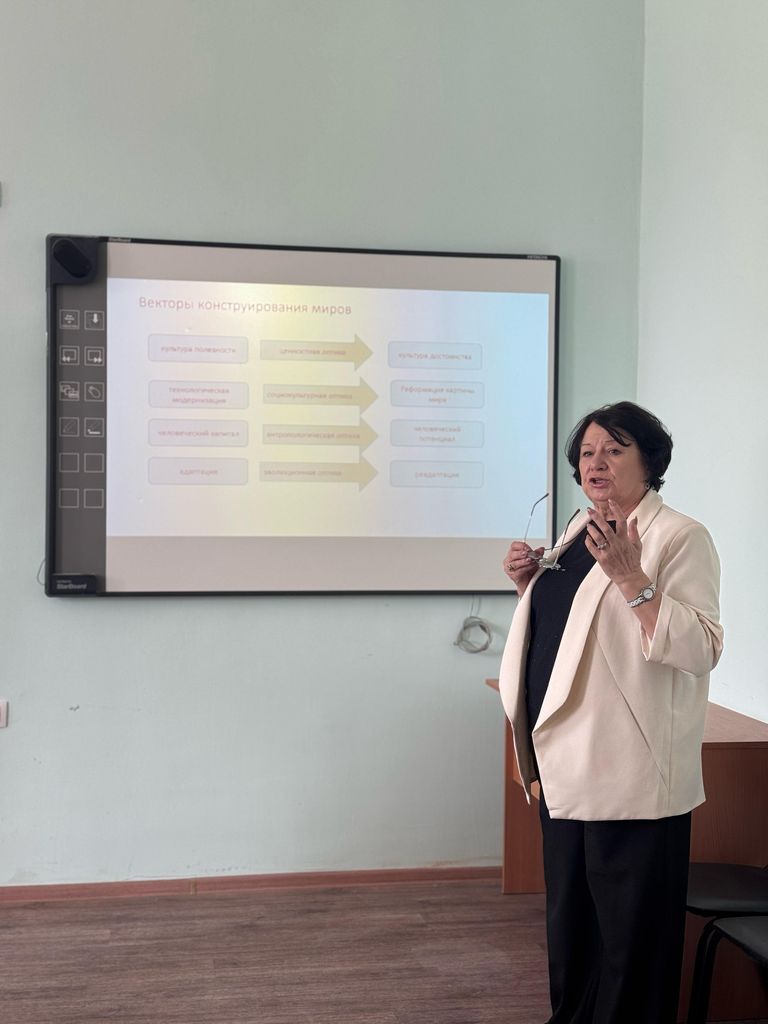 Новости все 23 апреля, 2025 Открытая лекция профессора Т.Д. Скудновой «Профессии будущего в фокусе антропологической оптики»21 апреля 2025 года на факультете психологии и социальной педагогики состоялась открытая лекция д-ра филос. наук, профессора кафедры психологии Т.Д. Скудновой. Свое выступление Татьяна Дмитриевна начала с презентации новой книги А.Г. Асмолова «Психология достоинства. Искусство быть человеком». Возможно ли остаться человеком и сохранить достоинство в мире, где конформизм и культура полезности стали нормой жизни? Как строить свою жизнь в условиях сложности, противоречий, неопределенности? Автор предлагает взглянуть на экзистенциальные вызовы современности с позиций антропологического подхода. Как раскрыть свой потенциал и помочь другим? Эта книга – предложение осмыслить свою жизнь, преодолеть внешние и внутренние ограничения, попытка отстоять культуру достоинства и свободу выбора жизненного пути. В лекции был раскрыт антропологический подход как интегральный подход к миру культуры, науки, образования и психолого-педагогической деятельности как профессии. Основной тезис презентации – человекоразмерность в профессиональной деятельности, подразумевающая особую оптику, специфический взгляд на человека как на сложную многомерную личность и предполагающая адекватные такому образу практики работы с людьми. Среди профессий будущего на первый план выступают антропологические профессии: тьюторы, социальные педагоги, коучи, психологи-консультанты, то есть антрополог как учитель будущего, обладающий мегакомпетентностью мастера человеческих отношений. Идеи мотивации и образа человека как проекта самого себя лежат в основе современной человекоцентричной модели корпоративной культуры и культуры достоинства. |