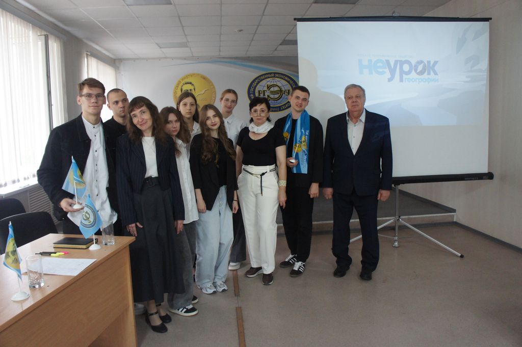 Новости все 23 сентября, 2025 Проведение «НЕурока географии» в Таганрогском институте имени А.П. Чехова (филиале) РГЭУ (РИНХ)18 сентября 2025 года в Таганрогском институте имени А.П. Чехова (филиале) РГЭУ (РИНХ) состоялось мероприятие в рамках проекта Русского географического общества «НЕурок географии». Проект реализуется два года; за это время «не-уроки» состоялись уже в 89 субъектах Российской Федерации и 4 зарубежных странах с общим охватом более 147 000 участников. В отличие от стандартного урока, проект превращает процесс познания в игру и занимательное путешествие в мир географии и смежных наук. Геоквиз «Мой город Таганрог», направленный на популяризацию знаний о родном крае и патриотическое воспитание молодежи, был проведен в формате интеллектуальной игры, включающей несколько раундов, каждый из которых посвящался определенной теме. Ответственный за разработку и реализацию мероприятия – старший преподаватель кафедры биолого-географического образования и здоровьесберегающих дисциплин, руководитель Центра геоэкологического проектирования Светлана Михайловна Гончарова. В организации и проведении геоквиза приняли участие директор Таганрогского института имени А.П. Чехова (филиала) РГЭУ (РИНХ), кандидат философских наук, доцент Светлана Анатольевна Петрушенко; декан факультета педагогики и методики дошкольного, начального и дополнительного образования, кандидат филологических наук, доцент Светлана Васильевна Гармаш; заведующий кафедрой биолого-географического образования и здоровьесберегающих дисциплин, доктор ветеринарных наук, кандидат педагогических наук, профессор Владимир Васильевич Подберезный; доцент кафедры биолого-географического образования и здоровьесберегающих дисциплин, заместитель начальника отдела организации и сопровождения научной деятельности, кандидат педагогических наук Елена Алексеевна Першонкова. Участниками мероприятия стали студенты с первого по третий курс профиля «Биология и География». Процесс выполнения интерактивных заданий увлек ребят, они получили яркие эмоции и новые знания. И мероприятие не ограничилось стенами аудитории: команды делали фото на фоне реальных природных и культурных объектов, определить которые требовалось при разгадывании предложенных ребусов. Каждый участник мероприятия получил сертификат.