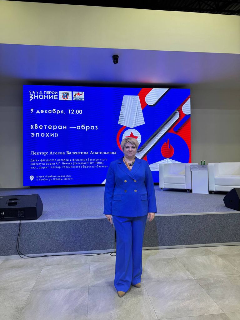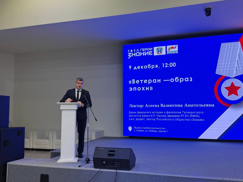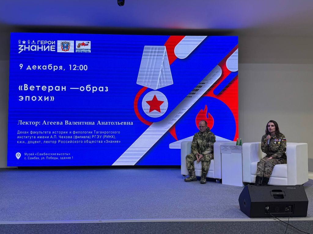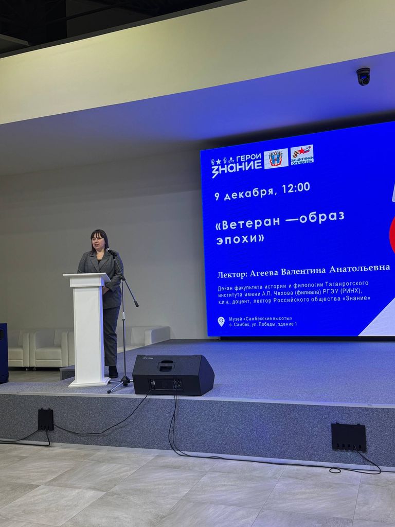Новости все 23 декабря, 2025 В День Героев Отечества декан факультета истории и филологии В. А. Агеева выступила в качестве лектора Российского общества «Знание»В рамках проекта «Ветеран – образ эпохи» в музейном комплексе «Самбекские высоты» состоялось памятное мероприятие, участниками которого стали более 200 школьников и студентов Ростовской области. Это совместный просветительский проект Общества «Знание», правительства Ростовской области и фонда «Защитники Отечества», реализованный при поддержке факультета истории и филологии Таганрогского института имени А.П. Чехова (филиала) РГЭУ (РИНХ), музейного комплекса «Самбекские высоты» и Российского военно-исторического общества. Мероприятие началось с церемонии возложения цветов к памятнику «Солдат-Победитель» и продолжилось встречей-лекцией, посвящённой героям-победителям в разные исторические эпохи. В качестве лектора выступила декан факультета истории и филологии Таганрогского института имени А.П. Чехова (филиала) РГЭУ (РИНХ), канд.ист.наук, доцент В. А. Агеева. Лектор обратилась к образам героев-ветеранов Великой Отечественной войны и их достойным преемникам – участникам специальной военной операции. «Они – звенья одной кольчуги, воины одного духа, наследники и продолжатели единой миссии. Ветераны – это не просто часть истории, которую мы чтим. Они – те, кто историю творит и пишет своей жизнью», – подчеркнула в своём выступлении Валентина Агеева. Много слов было сказано о семье, которая выступает своеобразным мостом, соединяющим прошлое и настоящее, и через которую передаётся память о героическом прошлом предков. Особенно ценной в этот день стала встреча с участниками СВО, известными под позывными «Вербочка» и «Пономарь». Они поделились со школьниками личными историями, рассказали о службе и откровенно ответили на их вопросы. В заключение мероприятия выступили директор народного военно-исторического музейного комплекса Великой Отечественной войны «Самбекские высоты» А. Ю. Данильченко и директор филиала Российского общества «Знание» в Ростовской области, канд. ист. наук Ж. С. Метёлкина. |