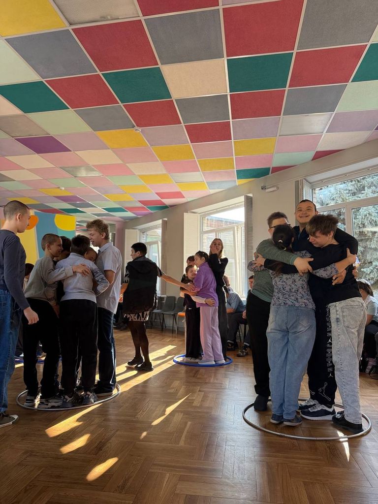 Новости все 24 октября, 2025 Продолжение сотрудничества кафедры общей педагогики ТИ имени А.П. Чехова и ГКОУ РО «Таганрогская специальная школа №19»20 октября 2025 г. в рамках деятельности лаборатории «Особый ребенок», руководимой д-ром пед. наук, профессором кафедры общей педагогики М.П. Целых, был организован и проведен праздник «День народного единства». Студенты 3 курса факультета иностранных языков подготовили для учащихся начальной школы интересный интерактивный сценарий. Вместе с ребятами они разыграли сценку о дружбе «Тучки и Солнышка». Этот трогательный сюжет напомнил детям, как важно быть добрыми, помогать друг другу и сохранять дружбу, которая делает наш мир теплее и светлее. Студенты-волонтеры Дарья Броновская, Диана Брезгулевская и Валерия Баллари вместе с ребятами играли с обручами, танцевали и общались. Завершением праздника стало создание большого плаката «Планета дружбы». Ребята украсили его своими яркими ладошками, символизирующими единство, мир и дружбу всех народов. Этот день подарил всем отличное настроение, радость и чувство единства! |