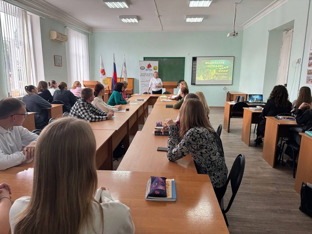 Новости все 24 октября, 2025 Октябрьское заседание студенческого медиаклуба «Зеркало»На кафедре психолого-педагогического образования и медиакоммуникации состоялось очередное заседание студенческого медиаклуба «Зеркало», организованное заведующим кафедрой И.В. Челышевой, зам. декана по учебной работе Л.И. Кобышевой, ассистентом кафедры Е.М. Купаревой. На заседании медиаклуба присутствовали студенты групп ПСП-511 и ПСПZ-551, обучающиеся по профилю «Психология и социальная педагогика». В рамках заседания медиаклуба преподаватели и студенты обсудили сюжет фантастического фильма «Календарь ма(й)я» (2022 г., реж. В. Фанасютина), обсудили актуальные темы взаимоотношений в школьном коллективе, буллинга, трудностей в коммуникации между родителями и детьми, созависимых отношений и внутренних конфликтов. Студенты отметили, что создатели фильма освещают важные вопросы взаимопомощи и дружбы, ценности времени и ответственности за поступки, которые невозможно изменить. В ходе общей дискуссии участники пришли к выводу, что обсуждение художественных фильмов может активно использоваться в профессиональной психолого-педагогической деятельности с подросткам, ознакомились с кейсами групповых и индивидуальных заданий, которые помогают раскрыть важные аспекты межличностной коммуникации, конструктивного взаимодействия и решения проблем детско-родительских отношений. Благодарим всех участников медиаклуба за интересную дискуссию и активное участие в работе медиаклуба! |