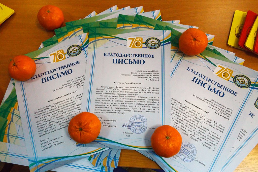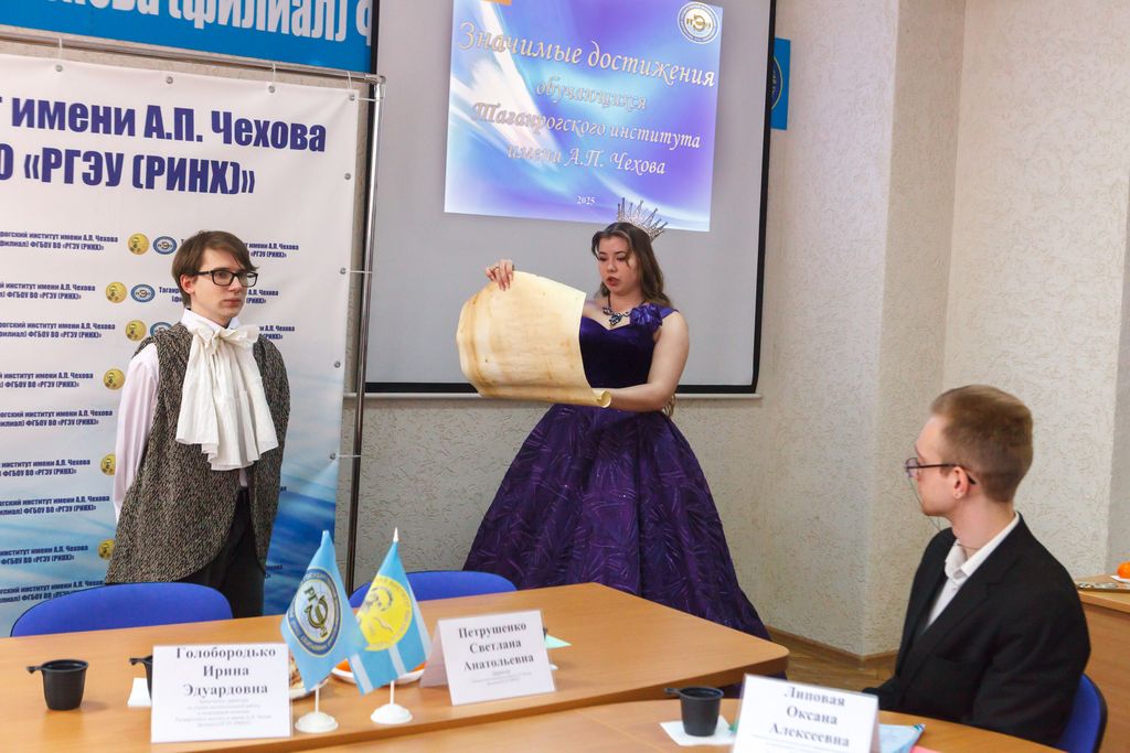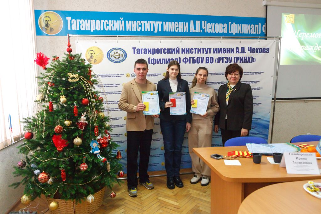 Новости все 25 января, 2026 День российского студенчества (Татьянин день) в Таганрогском институте имени А.П. ЧеховаВ преддверии празднования Дня российского студенчества (Татьяниного Дня) в Таганрогском институте имени А.П. Чехова (филиале) РГЭУ (РИНХ) состоялась встреча администрации Таганрогского института имени А.П. Чехова с лучшими студентами института. Открыла встречу директор Таганрогского института имени А.П. Чехова С.А. Петрушенко. Светлана Анатольевна поздравила студентов с Днем российского студенчества и отметила, что студенческие годы – это прекрасная пора самоопределения, формирования личности, поиска своего места в жизни, период бурного роста, наполненного не только напряженной учебой и ответственными экзаменами, но и яркими событиями, новыми знакомствами, возможностью обрести настоящих друзей, тех, кто поддержит в трудную минуту и разделит радость успеха. Также Светлана Анатольевна провела церемонию награждения лучших студентов Таганрогского института имени А.П. Чехова, которые ежегодно демонстрируют высокие достижения в учебе, науке и творчестве, активно участвуют в различных конкурсах и олимпиадах, завоевывая заслуженные победы и награды. Со словами поздравлений обратились ко всем присутствующим заместитель директора по учебно-воспитательной работе и молодежной политике И.Э. Голобородько и начальник отдела воспитательной и профориентационной работы, организационного сопровождения деятельности и развития карьеры О.А. Липовая. Ирина Эдуардовна и Оксана Алексеевна поздравили всех присутствующих с Днем российского студенчества и пожелали участникам встречи узнавать новое – как в сфере выбранной специальности, так и в творчестве, а также выразили благодарность за огромный личный вклад в укрепление престижа нашего института. Участников мероприятия ждал сюрприз: поздравление в театрализованной форме, которое позволило воссоздать события середины XVIII века, когда императрица и самодержица Всероссийская Елизавета Петровна подписала Указ о создании Московского университета, а граф Иван Иванович Шувалов стал его попечителем. С тех пор этот день, 25 января по новому стилю, считается Днем российского студенчества, а Святая Татьяна стала покровительницей всех студентов на Руси. Издавна существует традиция в День российского студенчества потчевать обучающихся бокалом медовухи. Следуя этой традиции, директор Таганрогского института имени А.П. Чехова С.А. Петрушенко угостила участников мероприятия медовым напитком. Помимо этого, в этот день Глава Администрации города Таганрога Светлана Анатольевна Камбулова поздравила лучших студентов Таганрогского института имени А.П. Чехова с Днем российского студенчества и вручила свидетельства стипендиатов Главы Администрации города Таганрога. С Днем российского студенчества!!!