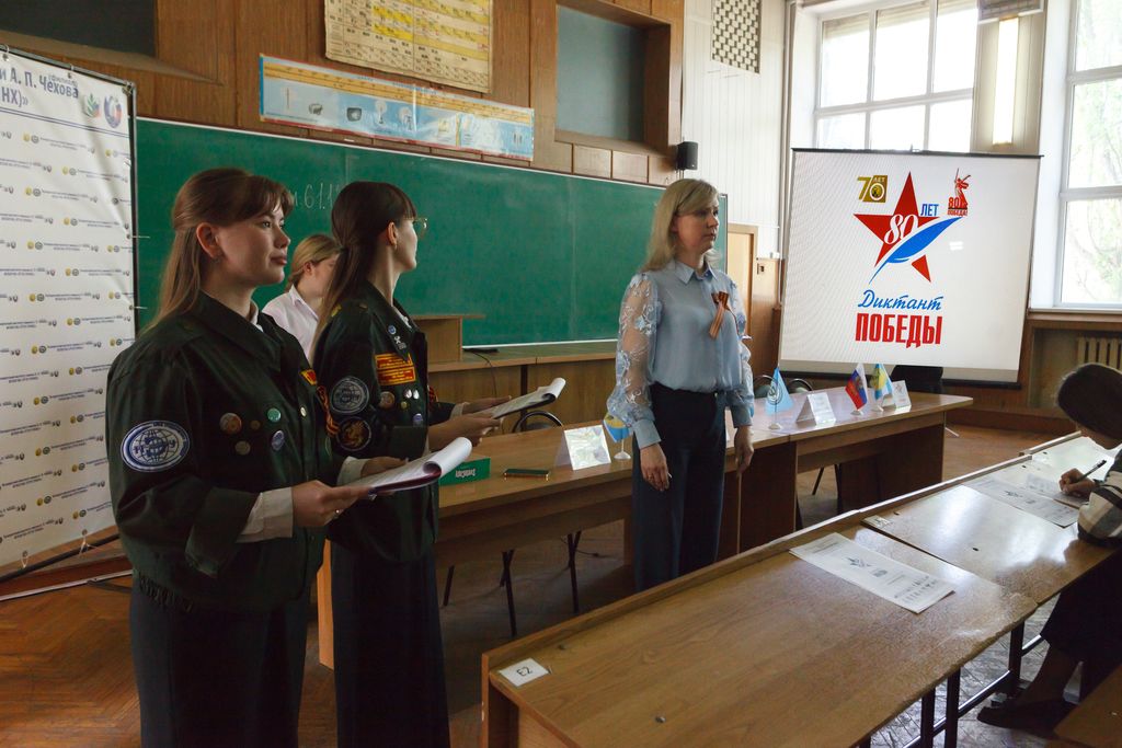 Новости все 25 апреля, 2025 Международный исторический диктант, посвященный событиям Великой Отечественной войны, - «Диктант Победы» в Таганрогском институте имени А.П. Чехова25 апреля 2025 года Таганрогский институт имени А.П. Чехова (филиал) РГЭУ (РИНХ) традиционно стал одной из площадок для проведения Международного исторического диктанта, посвященного событиям Великой Отечественной войны, – «Диктант Победы». В этом году, объявленном Президентом Российской Федерации Владимиром Владимировичем Путиным Годом защитника Отечества в честь 80-летия Победы в Великой Отечественной войне, «Диктант Победы» приобретает особое значение. Задачи Диктанта: предоставление возможности участникам Диктанта получить независимую оценку своих знаний о событиях Великой Отечественной войны; поощрение участников Диктанта, показавших наиболее высокий уровень исторической грамотности при выполнении заданий; получение объективной информации об уровне исторической грамотности российского общества с целью выработки конкретных мер по улучшению ситуации в данной сфере; привлечение внимания общественности и средств массовой информации к проблеме сохранения исторической памяти о Великой Отечественной войне. Организаторами Диктанта являются Всероссийская политическая партия «ЕДИНАЯ РОССИЯ», Российское историческое общество, Российское военно-историческое общество, Всероссийское общественное движение «Волонтеры Победы», Федеральное агентство по делам Содружества Независимых Государств, соотечественников, проживающих за рубежом, и по международному гуманитарному сотрудничеству (Россотрудничество), Общероссийская общественная организация «Российский союз ветеранов», Федеральная служба по надзору в сфере образования и науки (Росообрнадзор). «Диктант Победы» традиционно проводится на региональных площадках по всей России, за рубежом, а также онлайн на сайте диктантпобеды.рф. В 2025 году участниками «Диктанта Победы» стали 37 тысяч площадок во всех регионах России и за рубежом. Церемония открытия площадки проведения «Диктанта Победы» в Таганрогском институте имени А.П. Чехова началась с исполнения Гимна Российской Федерации. В начале мероприятия перед собравшимися выступил заместитель директора по научной работе и проектной деятельности Таганрогского института имени А.П. Чехова А.А. Волвенко. Алексей Александрович поблагодарил участников за активную гражданскую позицию и отметил, что написание диктанта - это не просто проверка знаний, а дань памяти мужеству, героизму нашего народа в годы Великой Отечественной войны. Инструктаж для участников провела начальник отдела воспитательной и профориентационной работы, организационного сопровождения деятельности и развития карьеры Оксана Алексеевна Липовая и бойцы студенческого педагогического отряда «Хамелеон» Таганрогского института имени А.П. Чехова. В 2025 году в тестовые задания диктанта были включены вопросы не только о событиях и героях Великой Отечественной войны, но и вопросы, связанные с современными событиями в зоне СВО и историческими подвигами воинов Красной Армии в Донбассе и Новороссии. С результатами диктанта можно будет ознакомиться на сайте диктантпобеды.рф в июне 2025 года в личном кабинете участника. |