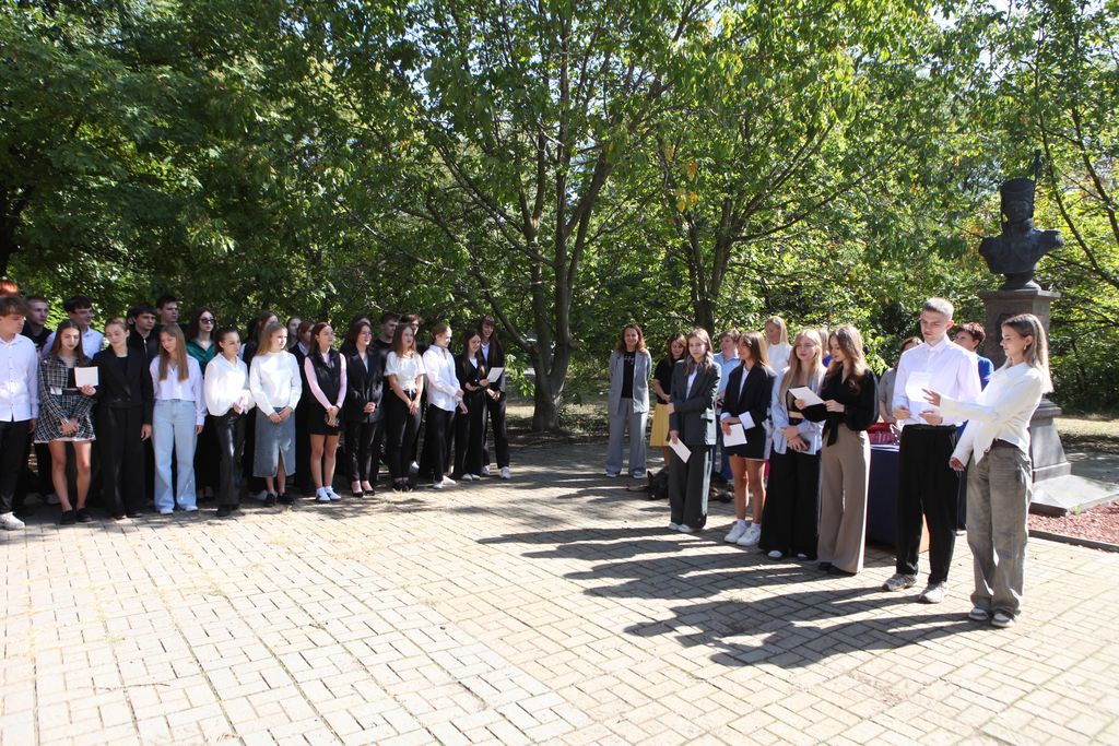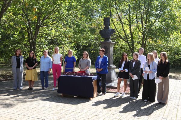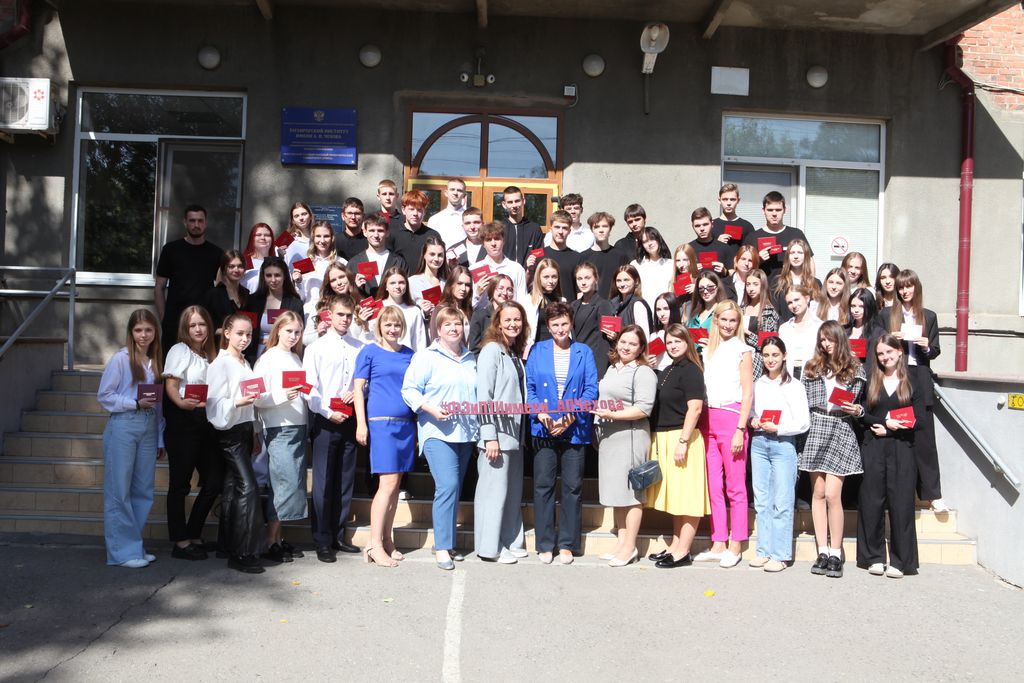 Новости все 25 сентября, 2025 Посвящение первокурсников факультета экономики и права в студенты Таганрогского института имени А.П. Чехова22 сентября 2025 года на факультете экономики и права состоялось торжественное мероприятие – посвящение первокурсников в студенты Таганрогского института имени А.П. Чехова. Посвящение в студенты – одна из традиций, которую чтут все факультеты Таганрогского института имени А.П. Чехова, не исключением является и факультет экономики и права. Открыла мероприятие декан факультета экономики и права И.А. Стеценко и зам. декана по учебной и воспитательной работе факультета экономики и права И.А. Гдалевич и С.С. Федорцова. Ирина Александровна отметила, что, поступив на факультет экономики и права Таганрогского института имени А.П. Чехова (филиала) ФГБОУ ВО «РГЭУ (РИНХ)», первокурсники сделали правильный выбор и уже начали строить карьеру настоящего профессионала своего дела. С напутственными словами к новоиспеченным студентам обратились зав. кафедрой отраслевых юридических дисциплин О.А. Курилкина, зав.кафедрой экономики и гуманитарно-правовых дисциплин Ю.А. Сердюкова и кураторы академических групп В.А. Тимофеенко (гр. ЮР-611) и Н.С. Холодковская (гр. ПРО-611). Преподаватели поздравили первокурсников с началом увлекательной студенческой жизни и пожелали студентам успехов в предстоящей учебной деятельности, творческих и научных достижений, положительных эмоций и ярких впечатлений на всем ее протяжении. После напутственных слов первокурсники торжественно произнесли клятву студента вместе со студенческим активом и наставниками: А. Слива (гр.ЮР-641), А. Саенко (гр.ЮР-641), Е. Немцева (гр. ПРО-621), М. Дубина (ПРО-621), М. Губанова (гр.ЮР-641), Н. Артамонов (гр.ЮР-641). В завершении мероприятия преподаватели вручили каждому первокурснику студенческий билет и зачетную книжку. Желаем первокурсникам факультета экономики и права отличной учебы и яркой студенческой жизни! |