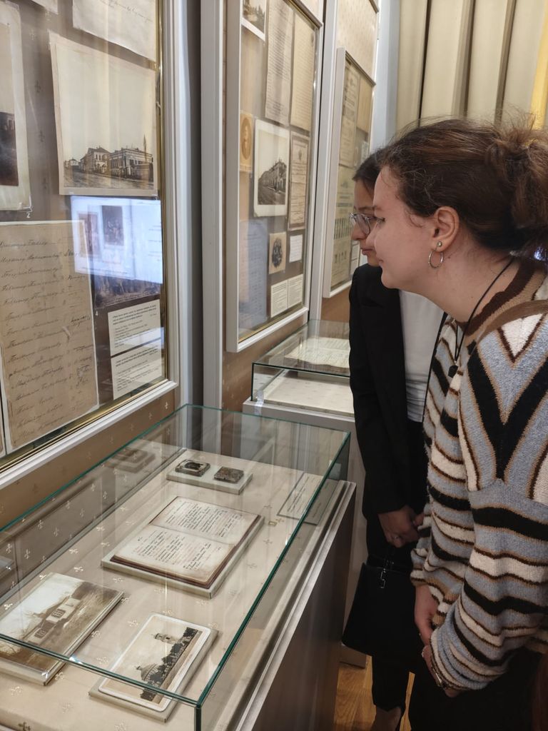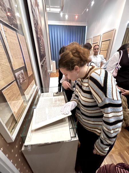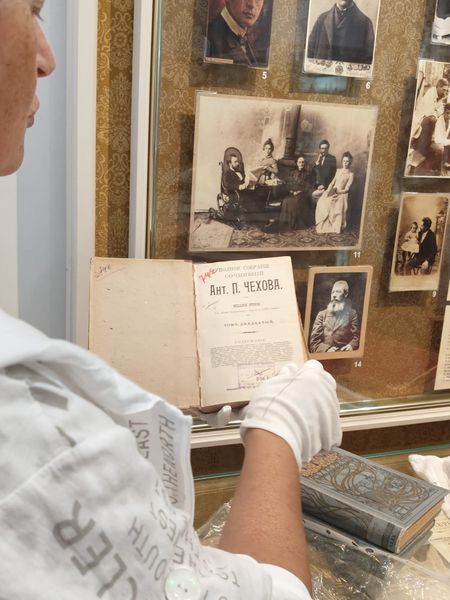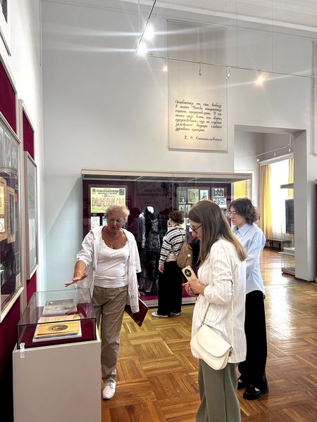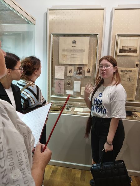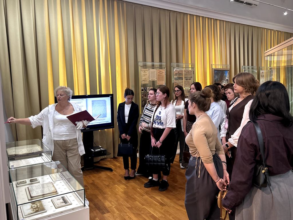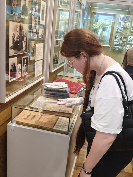 Новости все 25 сентября, 2025 Новый просветительский проект Чеховского центраВ сентябре 2025 года Научно-просветительский центр изучения русского языка и литературы имени А.П. Чехова (Чеховский центр) совместно с Литературным музеем А.П. Чехова приступил к реализации нового просветительского проекта «А.П. Чехов в историко-культурном пространстве Таганрога», куратором которого стала руководитель центра канд. филол. наук, доцент О.А. Яковлева. Анализ историко-культурного контекста исходит из понимания произведения как части духовной культуры конкретной эпохи и опирается на опосредованность творчества писателя этическими, эстетическими, религиозными, философскими идеями и мировоззренческими ориентирами этой эпохи. В рамках проекта студенты-филологи факультета истории и филологии познакомятся с историческими, биографическими и культурными факторами, повлиявшими на формирование личности А.П. Чехова и обусловившими особенности мировоззрения, образа жизни, поведения героев его произведений. Несомненно, эти знания послужат прекрасной базой для научного анализа творчества писателя. Первая встреча в рамках проекта была посвящена значению книги и чтения в жизни горожан конца XIX века в целом и чеховской семьи в частности. Научный сотрудник Литературного музея А.П. Чехова Ирина Владимировна Малых провела для студентов тематическую экскурсию по экспозиции, во время которой они узнали об ограничении круга чтения гимназистов, книжных пристрастиях братьев Чеховых, вкладе Антона Павловича в создание городской библиотеки и многом другом. Студенты увидели рукописи первой пьесы Чехова, смогли прикоснуться к прижизненным изданиям собрания сочинений писателя, познакомились с его личной библиотекой. Завершилась экскурсия своеобразной визуализацией значения творчества А.П. Чехова: вниманию студентов были представлены книжные шкафы, содержащие различные издания собраний сочинений прозаика и драматурга, переводы его произведений на другие языки, исследования жизни и творчества. |