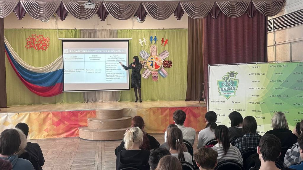 Новости все 26 января, 2026 Профориентационное мероприятие В МОБУ СОШ № 35 г. Таганрога23 января 2026 года представители приемной комиссии и студенты направления подготовки среднего профессионального образования Таганрогского института имени А.П.Чехова посетили МОБУ СОШ № 35 г. Таганрога, где провели профориентационное мероприятие для обучающихся 9-х, 11-х классов. Основная цель встречи – знакомство потенциальных абитуриентов с Таганрогским институтом имени А. П. Чехова, направлениями и профилями подготовки, объявленными к набору в 2026 году. Ответственный за прием документов, главный юрисконсульт Таганрогского института имени А. П. Чехова Светлана Петровна Шевченко подробно рассказала участникам мероприятия о сроках начала работы приёмной комиссии, способах подачи документов, учете индивидуальных достижений и иных особенностях приемной кампании 2026 года. Яркой частью мероприятия стало творческое выступление студентов направления СПО: Перегудовой Софии (группа ФК9-711), Кисловой Елизаветы (группа ФК9-711), Труфановой Вероники (группа ФК9-711), Львовой Александры (группа ФК9-711), Плахотиной Елизаветы (группа НК9-711), Сазонова Михаила (группа ФК11-711). Студенты в стихотворной форме рассказали об обучении в институте, а также провели для школьников интерактивную игру с элементами математики. Организационное и техническое сопровождение мероприятия осуществляла куратор СПО Анастасия Николаевна Плотникова. Все участники получили информационные буклеты и сувенирную продукцию с символикой института. Было сделано множество ярких и красочных фотографий, в том числе с обучающимися МОБУ СОШ № 35 г. Таганрога. Таганрогский институт А.П. Чехова благодарит администрацию МОБУ СОШ № 35 г. Таганрога за приглашение и организацию мероприятия и надеется на дальнейшее плодотворное сотрудничество! |