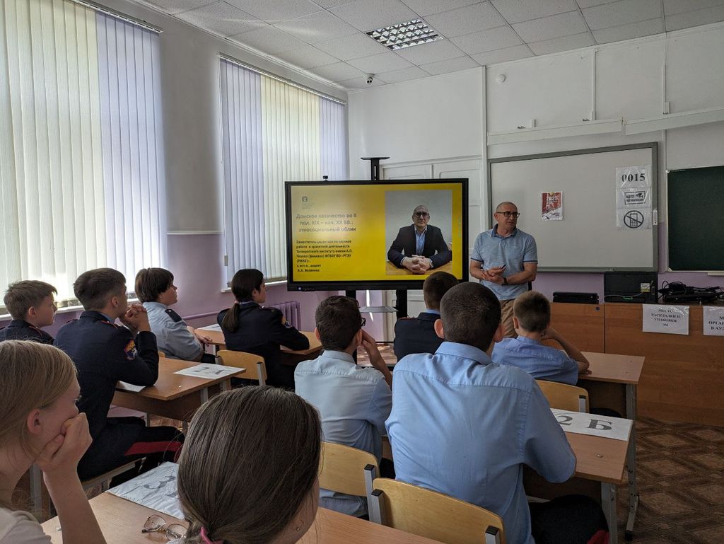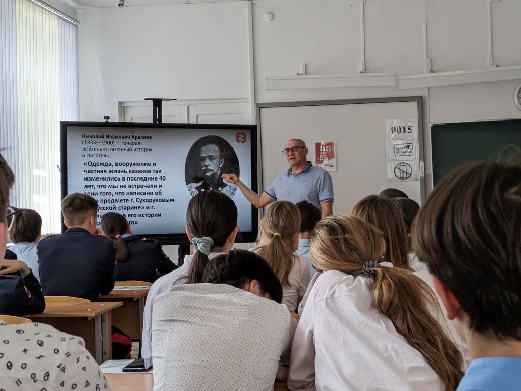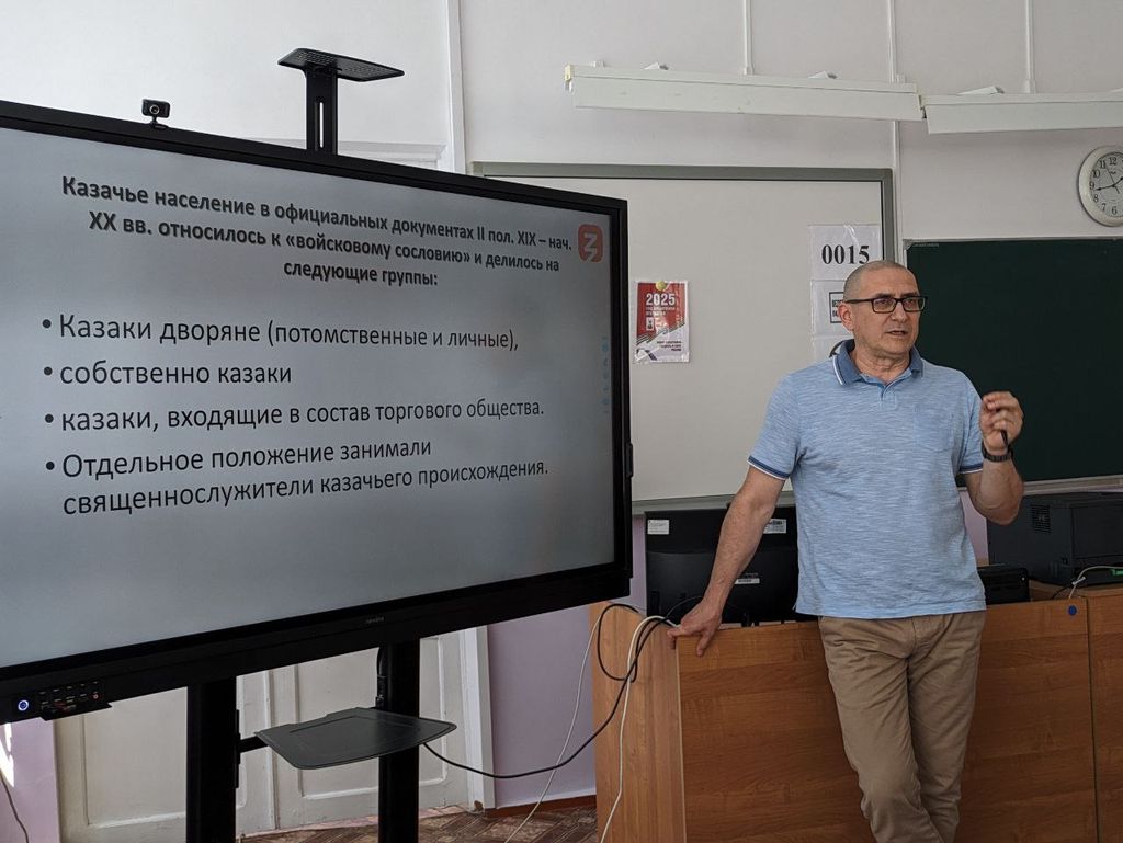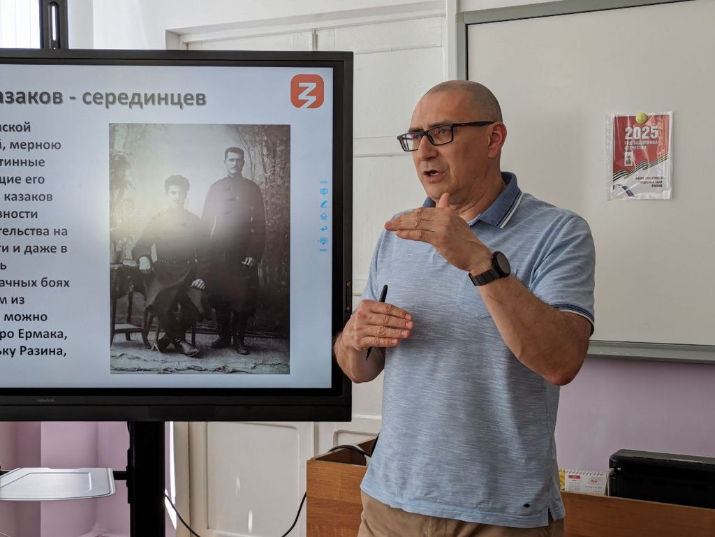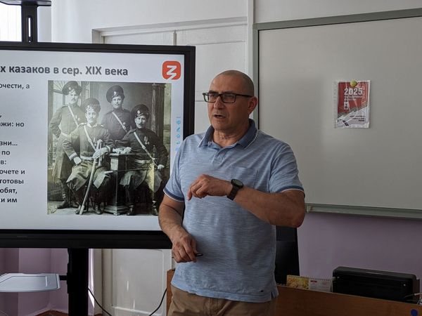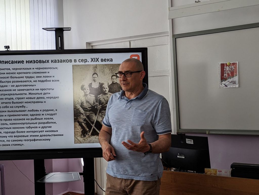 Новости все 26 мая, 2025 Заместитель директора по научной работе и проектной деятельности Таганрогского института имени А.П. Чехова А. А. Волвенко – лектор Российского общества «Знание»В рамках проектов Российского общества «Знание» на площадке МОБУ СОШ № 26 г. Таганрога заместитель директора по научной работе и проектной деятельности ТИ имени А.П. Чехова (филиала) РГЭУ (РИНХ), председатель общественного совета при Департаменте по делам казачества и кадетских учебных заведений РО, руководитель научной лаборатории «Казачество в истории и памяти» факультета истории и филологии, руководитель магистерской программы «Историческое образование в системе казачьих кадетских учебных заведений», кандидат исторических наук, доцент Алексей Александрович Волвенко прочитал лекцию на тему «Донское казачество во II половине XIX – начале XX веков: этносоциальный облик». Алексей Александрович обозначил в выступление отличительные особенности казаков из различных районов Войска Донского, обратив внимание на их антропологический облик, организацию семейно-бытовых отношений, отношение к военной службе и другое. В числе слушателей были представители казачьих классов школы, у которых возникло много вопросов к лектору. Мероприятие состоялось при продержке заместителя директора по воспитательной работе Н. В. Нечипоренко. |
