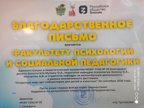 Новости все 26 сентября, 2025 Представители кафедры психологии – волонтёры фестиваля семейного творчества «Открытый мир» в МОБУ СОШ № 3520 сентября 2025 г. в МОБУ СОШ № 35 проводился фестиваль семейного творчества «Открытый мир», ставший настоящим праздником единения, творчества и тепла. По приглашению директора Н.В. Третьяковой в работе фестиваля активное участие приняли студенты-волонтёры 4 курса факультета психологии и социальной педагогики, обучающиеся по профилю «Психологическое консультирование и коучинг», под руководством старшего преподавателя кафедры психологии К.В. Гуменюк. В задачи студентов-волонтёров входила навигация, информационная поддержка, организация движения участников фестиваля, в том числе лиц с ОВЗ и инвалидностью, поддержка системы ориентирования. Общение с детьми и взрослыми – представителями школьных семей, а также городских организаций «Мы есть!», ВОРДИ, «Преодоление» и др. гостями – позволило студентам повысить уровень психологических компетенций в условиях инклюзивного общения. Благодарим организаторов и участников фестиваля за открытость, творчество и праздничное настроение! |