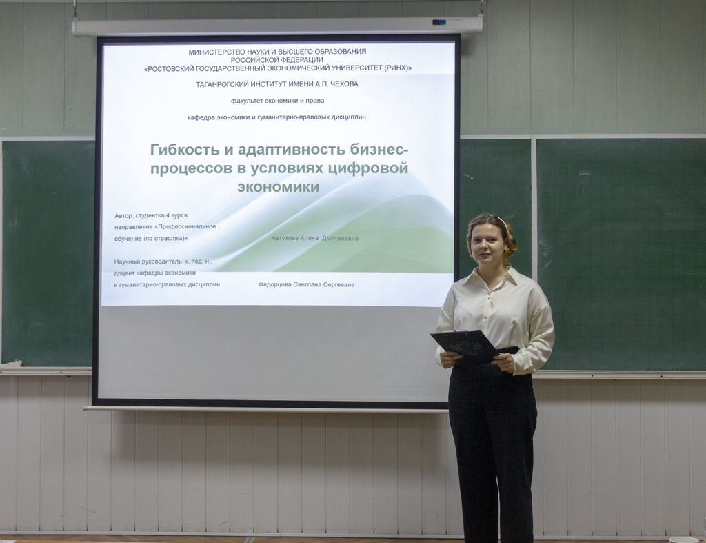 Новости все 26 ноября, 2025 Неделя экономики и финансовой грамотности на факультете экономики и праваВ период с 17 по 21 ноября 2025 года на факультете экономики и права прошла Неделя экономики и финансовой грамотности. Мероприятие было направлено на развитие теоретических знаний студентов и школьников, приобретение ими практических навыков в области экономики и финансов, а также на популяризацию экономических знаний среди молодежи. Неделя стала яркой площадкой для диалога между студентами, школьниками, ведущими преподавателями и экспертами-практиками. Открытие недели состоялось 17.11.2025 г. на территории СОШ №6 г. Таганрога. С приветственным словом к участникам обратилась декан факультета экономики и права Ирина Александровна Стеценко, которая дала старт мероприятию. Программа включила проведение квиз-игры для школьников «Хочу быть финансово грамотным!». Ответственными за проведение занятия выступили зав. кафедрой экономики и гуманитарно-правовых дисциплин Ю.А. Сердюкова и доцент кафедры экономики и гуманитарно-правовых дисциплин Н.С. Холодковская. 18.11.2025 г. на площадке факультета экономики и права состоялся круглый стол, посвященный 20-летию экономического образования в ТИ имени А.П. Чехова. Ответственным за проведение мероприятия выступил профессор кафедры экономики и гуманитарно-правовых дисциплин Д.В. Стаханов. Коллеги поделились воспоминаниями об истории становления и развития экономического образования. В этот же день, 18.11.2025 г., студенты 1-3 курсов факультета экономики и права вместе с зам. декана по ВР С.С. Федорцовой посетили экспозиции Таганрогского музея-заповедника «Общественно-политическая жизнь г. Таганрога в конце XIX – начале XX вв.» и «Социально-экономическое и политическое развитие Таганрога в 1920-1990-е гг.». 19 ноября 2025 года на факультете экономики и права состоялась II Всероссийская научная конференция «Современные вопросы управления бизнес-процессами в цифровой экономике», посвященная семидесятилетию Таганрогского института имени А.П. Чехова (филиал) ФГБОУ ВО «Ростовский государственный экономический университет (РИНХ)». Конференция была направлена на изучение и обобщение передового опыта, анализ актуальных проблем и поиск инновационных решений в сфере управления бизнес-процессами в цифровой экономике. В конференции приняли участие преподаватели и студенты образовательных учреждений Донецкой Народной Республики (г. Донецк, г. Мариуполь), г. Санкт-Петербурга, г. Таганрога и Ростовской области. Модератором пленарной части конференции выступила доцент кафедры экономики и гуманитарно-правовых дисциплин Н.С. Холодковская. В рамках секционных заседаний, модераторами которых стали преподаватели кафедры экономики и гуманитарно-правовых дисциплин д-р экон. наук, профессор Т.А. Щербакова, д-р экон. наук, профессор Д.В. Стаханов и канд. экон. наук, доцент Л.Н. Майорова, участники обсудили вопросы, связанные с теоретическими и практическими аспектами применения цифрового инструментария в бизнес-среде, рассмотрели направления развития бизнеса в условиях новой цифровой экономики, а также затронули актуальные вопросы цифровизации бизнес-процессов в современных экономических реалиях. Гости конференции отметили высокий уровень ее организации и высказали мнение о необходимости дальнейшего обсуждения проблем 