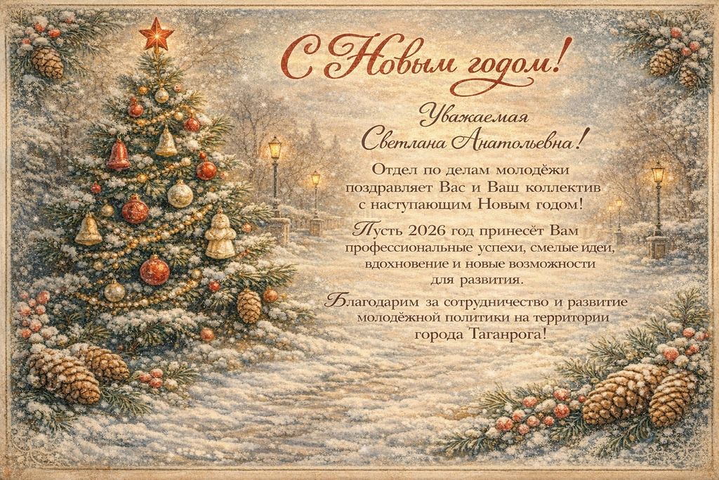 Новости все 26 декабря, 2025 ПОЗДРАВЛЕНИЕ АДМИНИСТРАЦИИ И КОЛЛЕКТИВА ТАГАНРОГСКОГО ИНСТИТУТА ИМЕНИ А.П. ЧЕХОВА ОТ ПАРТНЕРОВ |