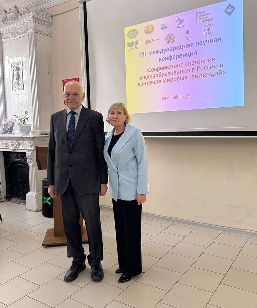 Новости все 27 октября, 2025 Итоги VII Международной научной конференции «Современное состояние медиаобразования в России в контексте мировых тенденций»24 октября 2025 г. в Таганрогском институте имени А. П. Чехова (филиале) ФГБОУ ВО «РГЭУ (РИНХ)» при активной поддержке директората института состоялась VII Международная научная конференция «Современное состояние медиаобразования в России в контексте мировых тенденций», организованная коллективом кафедры психолого-педагогического образования и медиакоммуникации и НОЦ «Медиаобразование и медиакомпетентность». Соорганизаторами мероприятия выступили Уральский государственный педагогический университет, Московский государственный институт культуры, ГБУ РК «Крымский киномедиацентр», Ассоциация кинообразования и медиапедагогики РФ, АНО ДПО «Академия инновационного образования и развития», Общественное движение «Информация для всех», Международный кинофестиваль и онлайн-кинотеатр «Ноль плюс», Информационно-просветительский интернет-портал «HOMO CYBERUS». Цель конференции – содействие консолидации актуальных исследований в сфере медиаобразования и медиакультуры в России и за рубежом. Пленарное заседание открыла директор Таганрогского института имени А. П. Чехова, кандидат философских наук С.А. Петрушенко. В своем приветственном слове Светлана Анатольевна подчеркнула, что в этом году международная научная конференция объединила многочисленные педагогические, психологические, культурологические, политологические, философские, социологические исследования из разных регионов России, Италии, Белоруссии, Узбекистана, Ирака, Германии и других стран и отметила, что широкая география участников свидетельствует о неизменном интересе научного сообщества к актуальным проблемам медиаобразования, медиаграмотности, медиакомпетентности. В ходе пленарного заседания к участникам с приветственными словами обратились: А. В. Федоров – доктор педагогических наук, профессор, почетный президент Ассоциации кинообразования и медиапедагогики России, Ростовский государственный экономический университет, г. Ростов-на-Дону, Россия. С.С. Бекназарова – доктор технических наук, профессор Ташкентского университета информационных технологий имени Мухаммада ал–Хоразмий, г. Ташкент, Узбекистан. Е.А. Бондаренко – кандидат педагогических наук, доцент, доцент кафедры анимации и мультимедиа МГУКИ, президент Ассоциации кинообразования и медиапедагогики Российской Федерации, г. Москва, Россия. Е.В. Куценко – кинопедагог, киновед, член правления Ассоциации кинообразования и медиапедагогики РФ, член Союза кинематографистов России, заместитель директора Крымского киномедиацентра, г. Симферополь, Россия. Н.А. Симбирцева – доктор культурологии, доцент, зав. кафедрой философии, социологии и культурологии Института общественных наук УрГПУ, г. Екатеринбург, Россия. А.А. Демидов – лидер Общественного движения «Информация для всех», аналитик Управления научной политики и инноваций МГИК, член редколлегий журналов «Медиаобразование» и «ВНЕшкольник», Государственный советник РФ I класса, лауреат премии Правительства в области культуры, г. Москва, Россия. В.А. Плешаков – кандидат педагогических наук, доцент, главный редактор информационно-просветительского интернет-портала "Homo Cyberus", главный редактор 