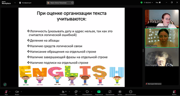 Новости все 27 ноября, 2025 Методический вебинар осенней сессии методической онлайн школы «Письменная часть ОГЭ-2026 по английскому языку: электронное письмо»26 ноября 2025 г. на факультете иностранных языков состоялся второй вебинар серии Всероссийских научных обучающих вебинаров, организуемых в рамках «Методической онлайн-школы: «Сдаем ОГЭ по английскому языку на пятерку!» для преподавателей школы и вуза, обучающихся и их родителей на тему «Письменная часть ОГЭ-2026 по английскому языку: электронное письмо». Организатором вебинара выступила кафедра английского языка. Особое внимание в работе вебинара было уделено структуре и содержанию письменной части КИМ ОГЭ 2026 года по английскому языку; особенностям подсчёта баллов и критериям оценивания задания 35 «Электронное письмо» в письменной части ОГЭ 2026 по английскому языку; методическому разбору актуальной демоверсии задания 35 «Электронное письмо» в ОГЭ 2026 по английскому языку. С приветственным словом к участникам вебинара обратились декан факультета иностранных языков Ольга Владимировна Кравец и заведующий кафедрой английского языка Юлия Михайловна Тимошенко. Основной спикер вебинара, доцент кафедры английского языка Е.А. Пальмова раскрыла современные требования к выполнению задания 35 «Электронное письмо» в ОГЭ 2026 по английскому языку; представила наиболее типичные ошибки, допускаемые обучающимися при написании личного электронного письма; осветила рекомендации экспертов ФИПИ по выполнению данного задания на ОГЭ. В работе вебинара также приняли активное участие преподаватели кафедры английского языка и кафедры немецкого и французского языков, а также студенты и магистранты факультета иностранных языков, учителя школ, обучающиеся школ г. Таганрога. Гости поблагодарили организаторов вебинара на ценную информацию, отметив, что с нетерпением будут ждать следующих подобных мероприятий. |