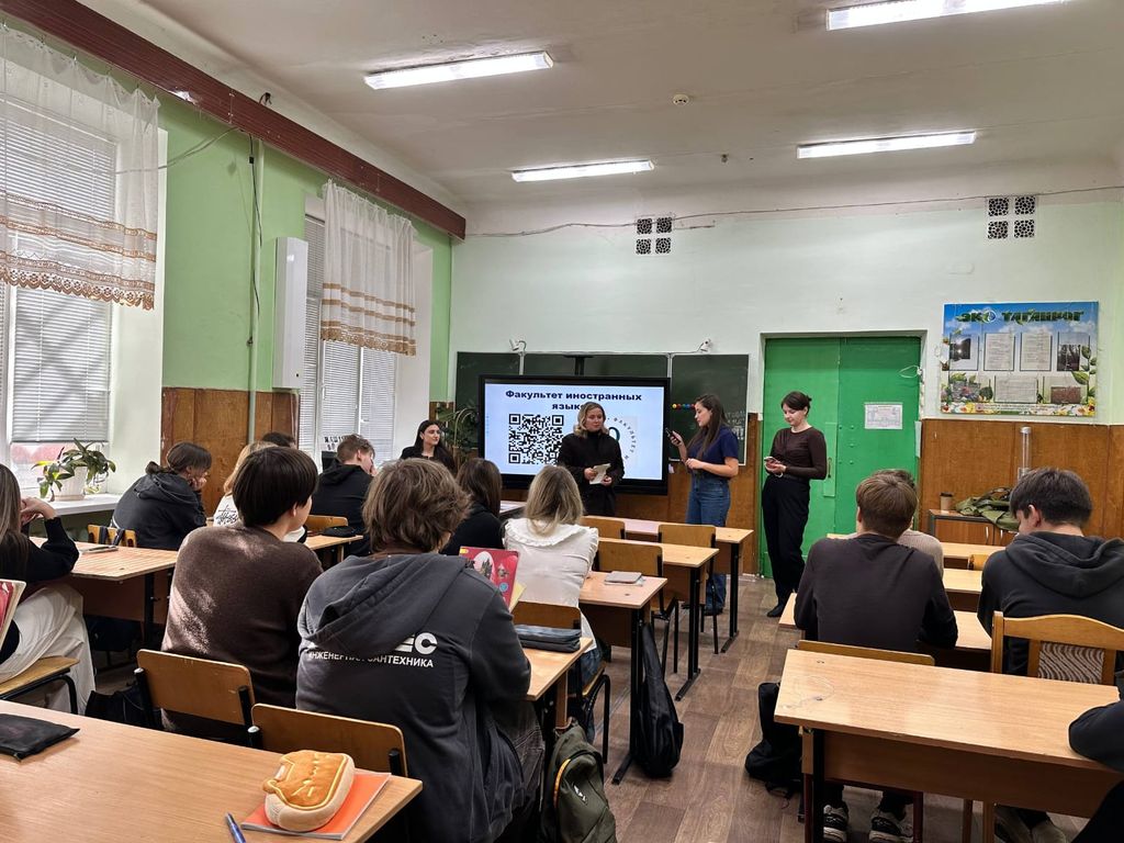 Новости все 28 октября, 2025 Профориентационная работа студентов-практикантов 5 курса факультета иностранных языковСогласно плану профориентационной работы студентами группы ИЯ-352 и ИЯ-351 были подготовлены и проведены профориентационные мероприятия со старшеклассниками. В октябре в МАОУ СОШ № 10 г. Таганрога и МАОУ Гимназия имени А.П. Чехова, в МОБУСОШ № 42 г.Шахты, МОБУСОШ № 1 г. Семикаракорска студентами были проведены агитационные встречи с обучающимися 9-х и 10-х классов. Встречи прошли в формате интерактивной беседы. Учащимся была представлена презентация, наглядно демонстрирующая специфику обучения в Таганрогском институте имени А.П.Чехова: его инфраструктуру и факультеты; основные направления образовательной деятельности и внеучебную активность. Студенты рассказали о традиционных мероприятиях, организуемых институтом и факультетом для школьников, таких как Дни открытых дверей, Олимпиады по иностранным языкам, конкурсы и др. В ходе диалога старшеклассники получили ответы на все интересующие их вопросы. Проведенная агитационная работа позволила донести важную информацию до целевой аудитории, вызвать живой отклик и мотивировать десятиклассников к более осознанному выбору профессии и вуза для поступления. |