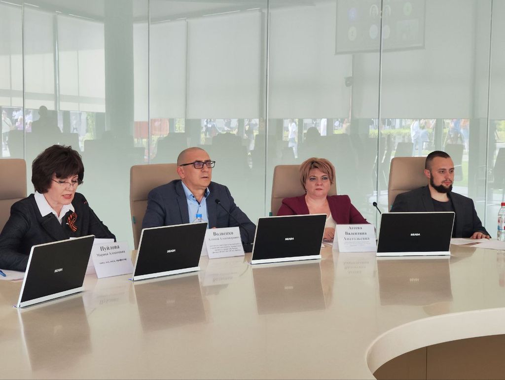 Новости все 29 апреля, 2025 Приазовский научный центр РАО. Панельная дискуссия «Подвиг учителя на фронте и в тылу: роль исторического наследия в формировании гражданско-патриотических качеств современной молодежи»25 апреля Приазовским научным центром РАО Таганрогского института имени А.П. Чехова проведена панельная дискуссия «Подвиг учителя на фронте и в тылу: роль исторического наследия в формировании гражданско-патриотических качеств современной молодежи». Это масштабное научное событие явилось частью мероприятий, проведенных научными центрами и региональными научными центрами России, запланированных в рамках IV Международной Ассамблеи «Школа Победы», которая организована Российской академией образования и посвящена Году защитника Отечества и 80-летию победы в Великой Отечественной войне. Панельная дискуссия проводилась на базе Народного военно-исторического музея Великой Отечественной войны «Самбекские высоты» и была посвящена обсуждению вопросов осмысления исторического наследия и развития национального самосознания актуальных научно-педагогических проблем, связанных с воспитанием патриотизма и уважения к культурно-историческим традициям и духовно-нравственным ценностям России, с укреплением связи между поколениями и формированием единого суверенного пространства отечественной школы. Мероприятие проходило в смешанном формате. К дискуссии подключились коллеги из РАО, Мордовского государственного педагогического университета имени М.Е. Евсевьева, Мелитопольского государственного университета, Северо-Кавказского федерального университета, Кубанского государственного университета, Башкирского государсвенного педагогического университета им. М. Акмуллы, аспиранты, магистранты и студенты Таганрогского института имени А.П. Чехова, слушатели Центра повышения квалификации ТИ имени А.П. Чехова. Модератор дискуссии – руководитель Приазовского НЦ РАО Таганрогского института имени А. П. Чехова, кандидат педагогических наук, профессор кафедры педагогики дошкольного, начального и дополнительного образования М.А. Пуйлова. С приветственным словом к участникам дискуссии обратился заместитель директора по научной работе и проектной деятельности ТИ имени А.П. Чехова (филиала) РГЭУ (РИНХ), кандидат исторических наук Волвенко Алексей Александрович. Он отметил значимость вопросов, связанных с сохранением исторического наследия и той роли, которую оно играет в формировании гражданско-патриотических качеств современной молодежи, особенно будущих педагогов. В великую эпопею всенародного подвига, каким была Отечественная война 1941-1945 гг., учительство вписало немало героических страниц. С первых дней войны многие тысячи учителей, надев серые солдатские шинели, с оружием в руках, плечом к плечу, отважно сражались за нашу Родину. Кто-то из них продолжал свою деятельность в школах. Агеева Валентина Анатольевна, кандидат исторических наук, доцент, декан факультета истории и филологии Таганрогского института имени А.П. Чехова (филиала) РГЭУ (РИНХ) выступила с докладом «Учитель на передовой тыла в 1941-1945 годах». Валентина Анатольевна рассказала участникам о деятельности учителей, о их вкладе в дело Великой победы, о том подвиге, который совершали учителя в тылу и на линии фронта. Научный сотрудник ГБУК РО «Народный