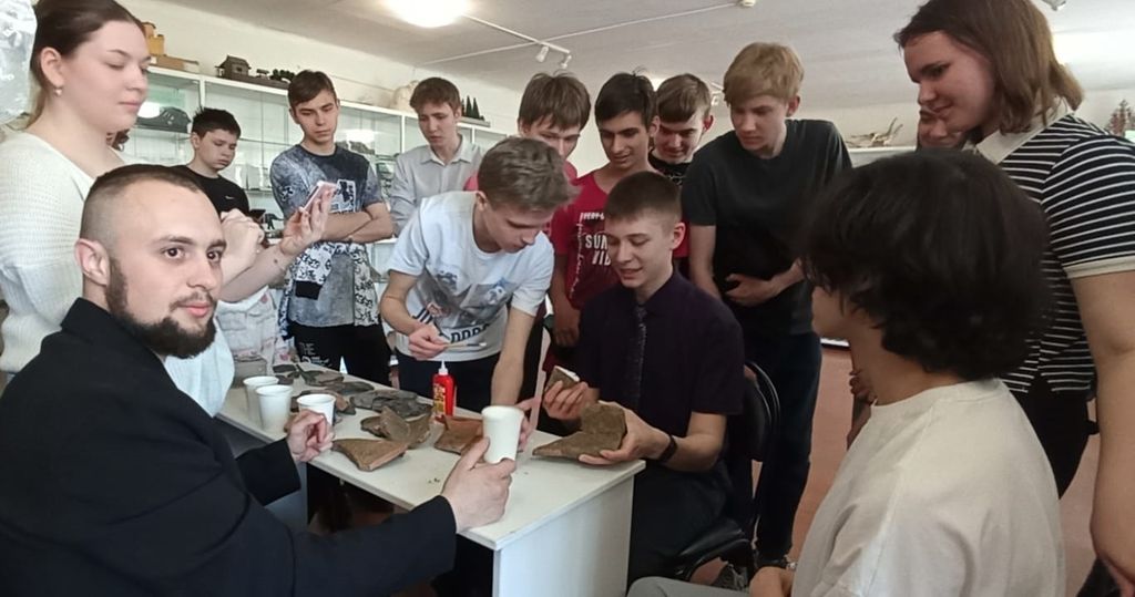 Новости все 29 апреля, 2025 Мастер-класс «Музейная площадка» на факультете истории и филологииНа факультете истории и филологии состоялся мастер-класс «Музейная площадка» для молодых педагогов и будущих экскурсоводов в рамках реализации проекта «Музей туризма и краеведения», получившего поддержку от благотворительного фонда «Синара». Автором идеи выступили АНО «Клуб молодого педагога» и Станция юных туристов г. Таганрога. В мероприятие также приняли участие студенты, обучающиеся по профилю «История» и «Музейное дело». К участникам мероприятия обратились декан факультета истории и филологии, канд. ист. наук В. А. Агеева и директор Станции юных туристов г. Таганрога и председатель городского Клуб молодых педагогов Р. С. Коновский. Программа мероприятия включала лекцию доцента кафедры истории, канд. ист. наук Е.В. Прокофьевой о роли музея в современном обществе. Елена Владимировна представила основные этапы становления музея как социокультурного института, познакомила слушателей с подходами к определению понятий «музееведение» и «музей». Особое внимание уделила классификации музеев в контексте формирования единой музейной сети на территории современной России, а также современным формам организации музейной экспозиции: эко-музеям, живым музеям и виртуальным. Далее в Музее истории, археологии и палеонтологии имени В.П. Литвиненко факультета истории и филологии В. А. Агеева на примере его экспозиции рассказала о видах музейных экспонатов и технологиях создания музейной экспозиции. В завершение мастер-класса преподаватель кафедры истории, зам. декана по ВР Е.Н. Капканов на конкретных примерах, используя композиционное пространство факультетского музея, дал практические рекомендации по проведению экскурсии и провел практическое занятие по реставрации музейных предметов. Ассистентами Ефима Николаевича выступили обучающиеся по профилю «История» и «Музейное дело». |