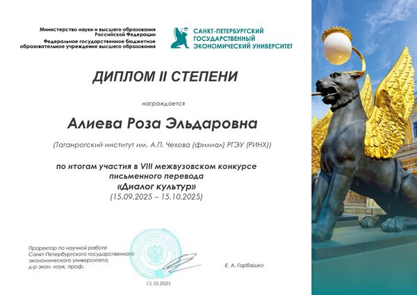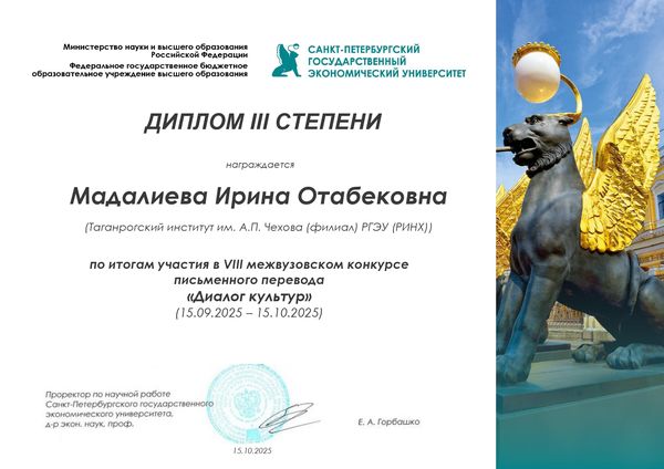 Новости все 29 октября, 2025 Студенты факультета иностранных языков – победители конкурса переводов «Диалог культур»Подведены итоги ежегодного межвузовского конкурса письменного перевода «Диалог культур», организуемого кафедрой романо-германской филологии и перевода Санкт-Петербургского государственного экономического университета к международному Дню переводчика. Конкурс 2025 года был посвящен 80-летию Великой Победы и приурочен к Году защитника Отечества. В этом году на конкурс поступило 172 работы из 18 вузов России. Участниками конкурса стали студенты из Санкт-Петербурга, Москвы, Петрозаводска, Калининграда, Нижнего Новгорода, Калуги, Казани, Пензы, Ульяновска, Воронежа, Старого Оскола, Донецка, Краснодара, Таганрога, Ростова-на-Дону. Победителями конкурса признаны следующие студенты факультета иностранных языков, изучающие французский язык: В номинации «Перевод художественной литературы»: Диплом 3 степени – Мадалиева Ирина, гр. ИЯ-352. В номинации «Перевод текстов общественно-политической тематики»: Диплом 3 степени: – Лелеко Полина, гр. ИЯ-342. В номинации «Перевод текстов экономической тематики»: Диплом 2 степени – Алиева Роза, гр. ИЯ-352. Кафедра немецкого и французского языков поздравляет победителей и желает им творческих успехов и профессионального роста! |