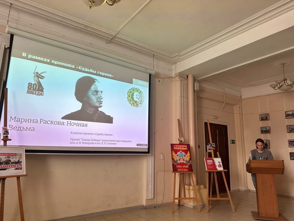 Новости все 30 апреля, 2025 Кафедра психологии продолжает реализацию просветительского проекта «Судьбы героев»26 апреля 2025 г. представители кафедры психологии организовали очередное занятие в рамках просветительского проекта «Судьбы героев», реализуемого в контексте плана мероприятий, приуроченных к Году защитника Отечества и 80-летию Победы в Великой Отечественной войне 1941-1945 гг. Встречу со студентами 1 и 2 курсов, обучающимися по профилю «Психологическое консультирование и коучинг», открыл доц. кафедры психологии А.В. Макаров, являющийся инициатором проекта. Он отметил, что в современных условиях через просветительские проекты необходимо возвращаться к ценности исторической правды и важности сохранения исторической памяти. Ассистент кафедры психологии К.В. Гуменюк напомнила обучающимся о том, что указом Президента Российской Федерации № 1459 от 3 ноября 2011 г. за мужество, стойкость и массовый героизм, проявленные защитниками города в борьбе за свободу и независимость Отечества, Таганрог получил почётное звание «Город воинской славы». Внимание участников проектного занятия было сосредоточено на исследовании вопросов психологии исторической памяти, отражённой в названиях улиц г. Таганрога. В течение апреля 2025 г. студенты группы ПСХ-511 занимались изучением истории таганрогских улиц, в названиях которых увековечены имена ветеранов Великой Отечественной войны. Каждому студенту нужно было не только подготовить презентацию о герое, но и снять небольшое видео на «улице Героя». В результате получился небольшой видеопроект «Их именами названы улицы Таганрога», повествующий о жизни Семёна Морозова, Ивана Голубца, Зои Космодемьянской, Олега Кошевого, Лизы Чайкиной, Марины Расковой, Анатолия Ломакина, Бориса Галицкого. Из предложенного преподавателями списка каждый студент самостоятельно выбрал героя и погрузился в изучение его биографии, представив интересные факты и архивные фото. Финальный этап занятия подтвердил, что в ходе поисковой работы студенты смогли не только собрать уникальный материал, но и передать живую связь поколений через исследование реальных судеб настоящих патриотов. |