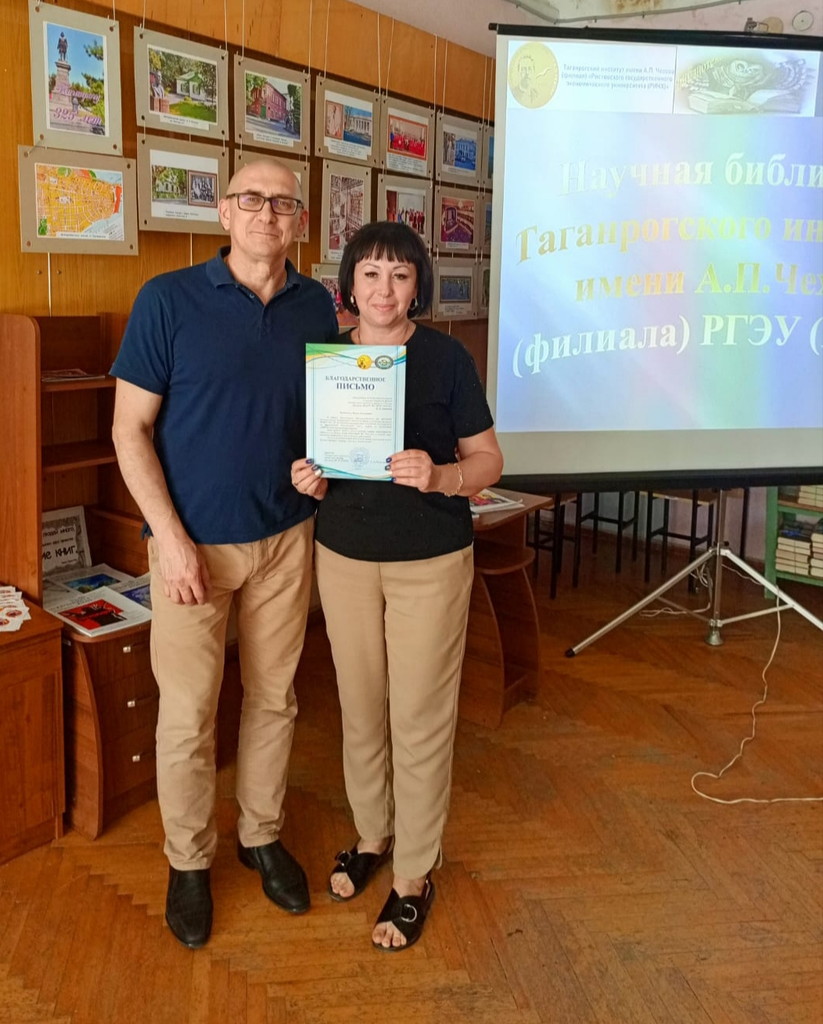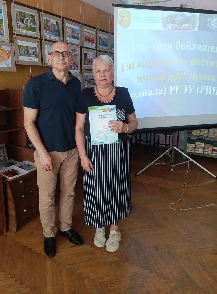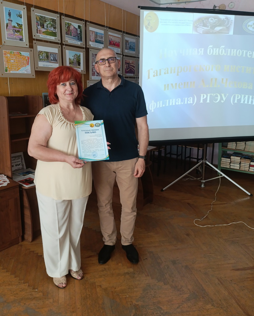 Новости все 30 мая, 2025 Библиотеки учебных заведений в информационном обществе: традиции и перспективы развитияБиблиотека Таганрогского института имени А.П. Чехова совместно с коллегами из Ростовского государственного экономического университета (РИНХ) 27 мая 2025 г. провели профессиональное мероприятие «Библиотеки учебных заведений в информационном обществе: традиции и перспективы развития», приуроченное к Общероссийскому дню библиотек. Открыла торжественное мероприятие директор библиотеки Н.М. Ивасенко, которая поздравила всех присутствующих с профессиональным праздником и пожелала удачи, неиссякаемого энтузиазма, благодарных читателей и творческих успехов во всех начинаниях. С приветственным словом от имени администрации института к библиотекарям обратился заместитель директора по научной работе и проектной деятельности, канд. ист. наук, доцент А.А. Волвенко. Он отметил важную роль библиотеки в образовательном и научном процессе вуза и вручил Благодарственные письма за безупречный труд, творческий подход к своим обязанностям и в связи с профессиональным праздником всему коллективу библиотеки Таганрогского института имени А.П. Чехова. Первая часть мероприятия включала следующие вопросы для обсуждения:
