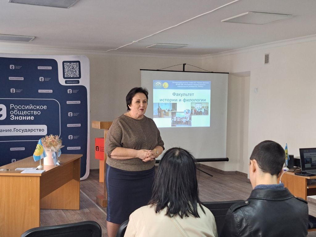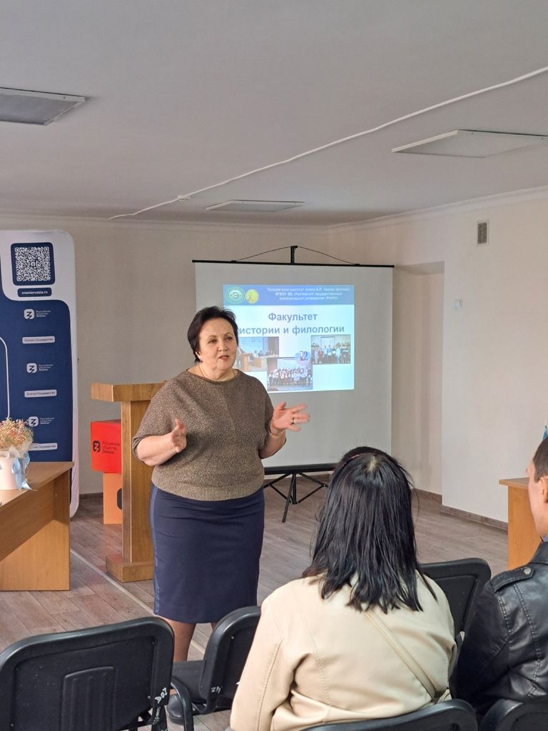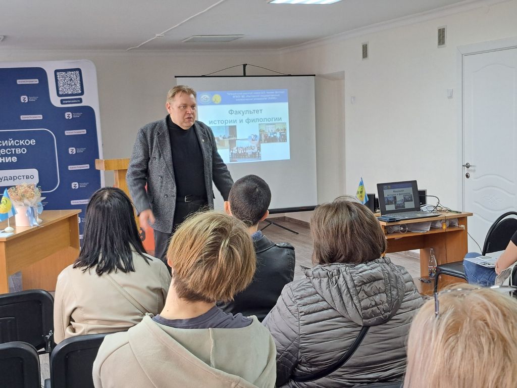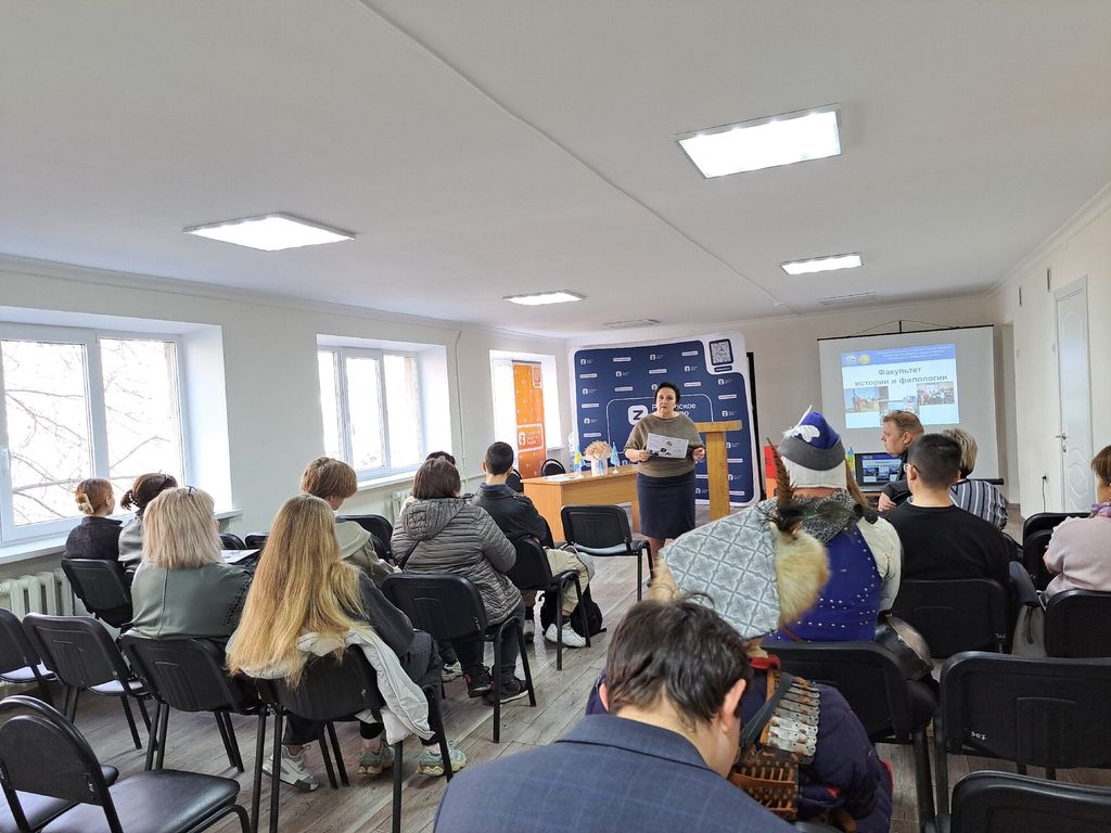 Новости все 31 марта, 2025 День открытых дверей на факультете истории и филологии30 марта факультет истории и филологии принимал гостей – будущих абитуриентов и их родителей. Несмотря на непогоду, на факультет приехали выпускники из Таганрога, Шахт, Мясниковского и Неклиновского районов, а также из школ Донбасса. На пороге факультета ребят и их родителей встречали «рыцари» - активисты клуба «Сварог» в костюмах участников исторических реконструкций. В аудитории участников встречи сердечно приветствовали заведующие выпускающими кафедрами факультета: канд. ист. наук, доц. М.И. Гуров и канд. филол. наук, доцент Т.М. Субботина. Выпускникам и их родителям подробно рассказали о программах бакалавриата и магистратуры, реализуемых на факультете, о научной и просветительской работе, участниками которой являются студенты всех профилей подготовки, о студенческой жизни за пределами аудитории. Особенное внимание было уделено новым программам подготовки, которые заинтересовали потенциальных абитуриентов. Это программа «История и музейное дело», а также запускаемая на факультете в 2025 году программа «Медиакоммуникация в рекламе и связях с общественностью». Своими впечатлениями о студенческой жизни поделились и старшекурсники, которые призвали гостей пополнить ряды будущих педагогов - филологов и историков, музейных работников, специалистов по рекламе и связям с общественностью. В заключение встречи гости смогли осмотреть аудитории факультета и задать вопросы преподавателям. |